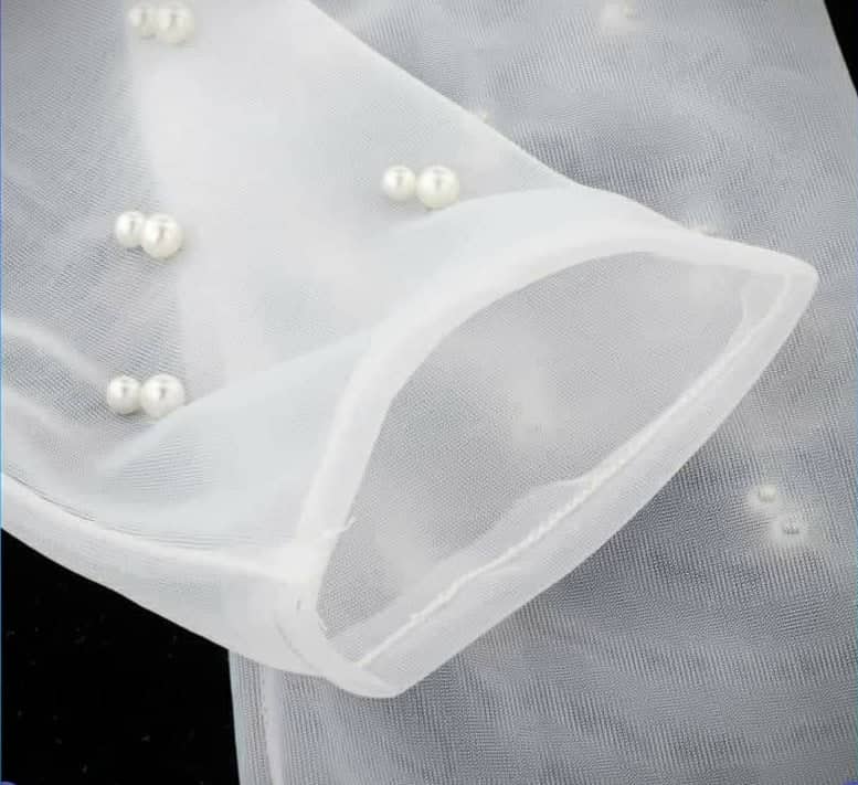 Găng tay Cô dâu và Dạ hội, đi tiệc, sự kiện, lễ hội, chụp ảnh MS: 43345 Chất liệu: tuyn mềm. Kiểu dáng: bao kín ngón, trong suốt, tạo kiểu và đính hạt trai ở