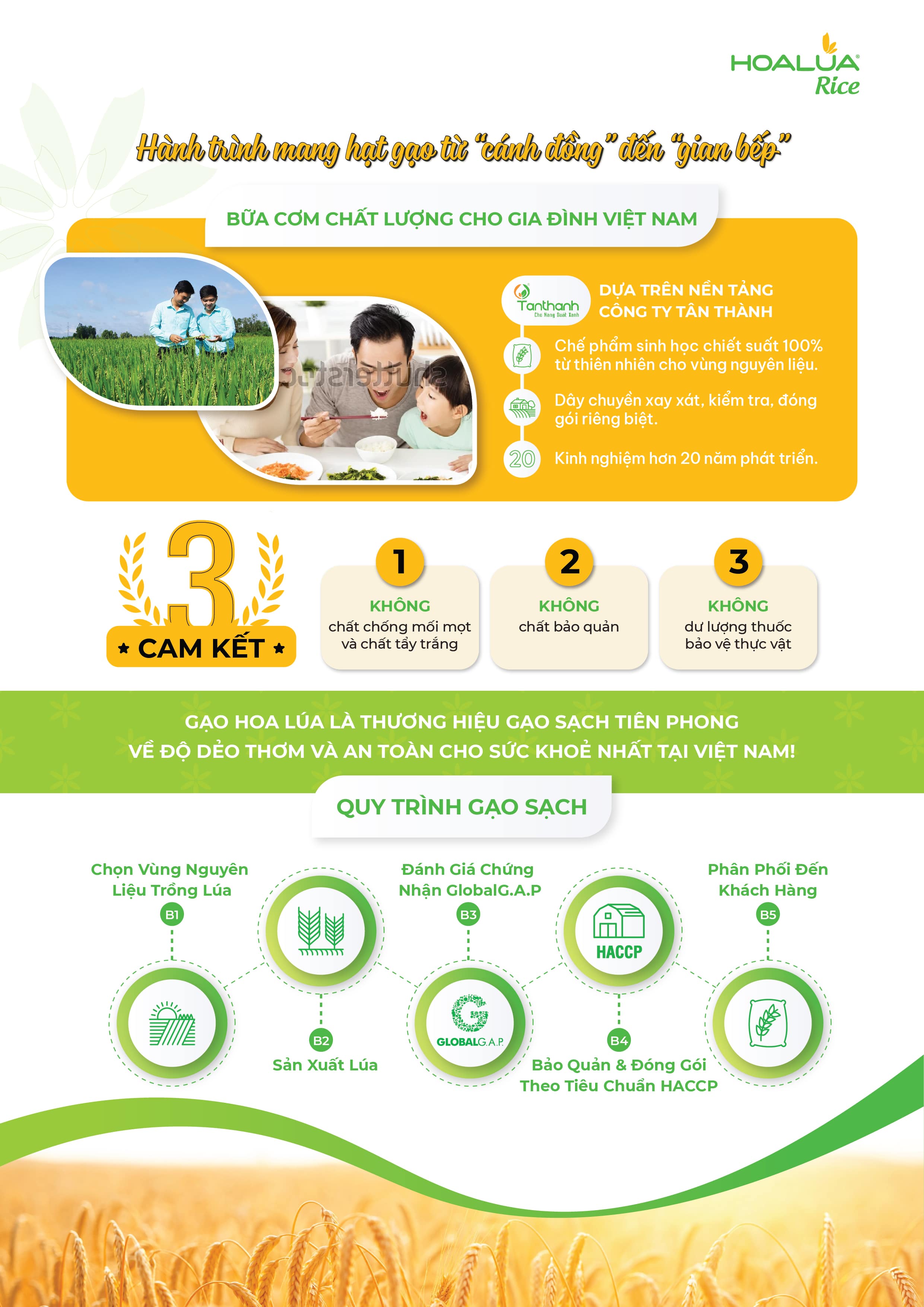 - Gạo sạch, đạt tiêu chuẩn Global G.A.P, đóng gói theo tiêu chuẩn Châu Âu (HACCP).