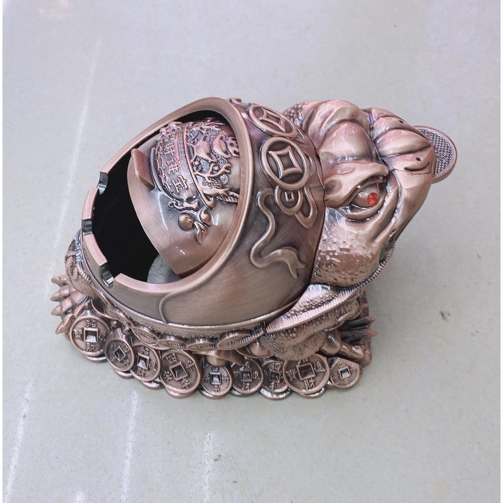Hình dáng : chú chó Bulldog Thân gạt tàn có thiết kế khe giữ thuốc Kích thước : dài 15cm, rộng 11cm, cao 8,5cm Màu : Vàng Đồng, Đồng Đỏ Ưu điểm : dễ dàng