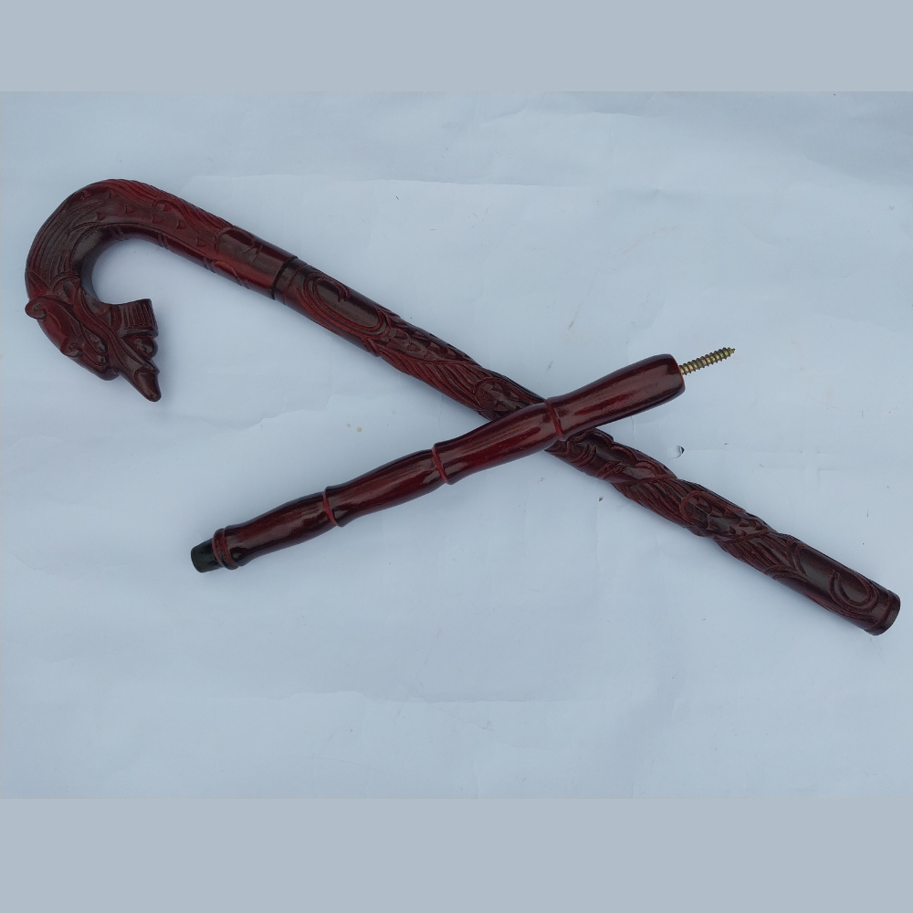 Gậy gỗ xà cừ đầu rồng Kiểu thân đốt trúc- dành cho người già Nguyên liệu: gỗ xà cừ,keo Kích thước: dài 89- 91cm x đường kính 3,5cm Gậy Batoong Đầu Rồng Gỗ Keo- Món