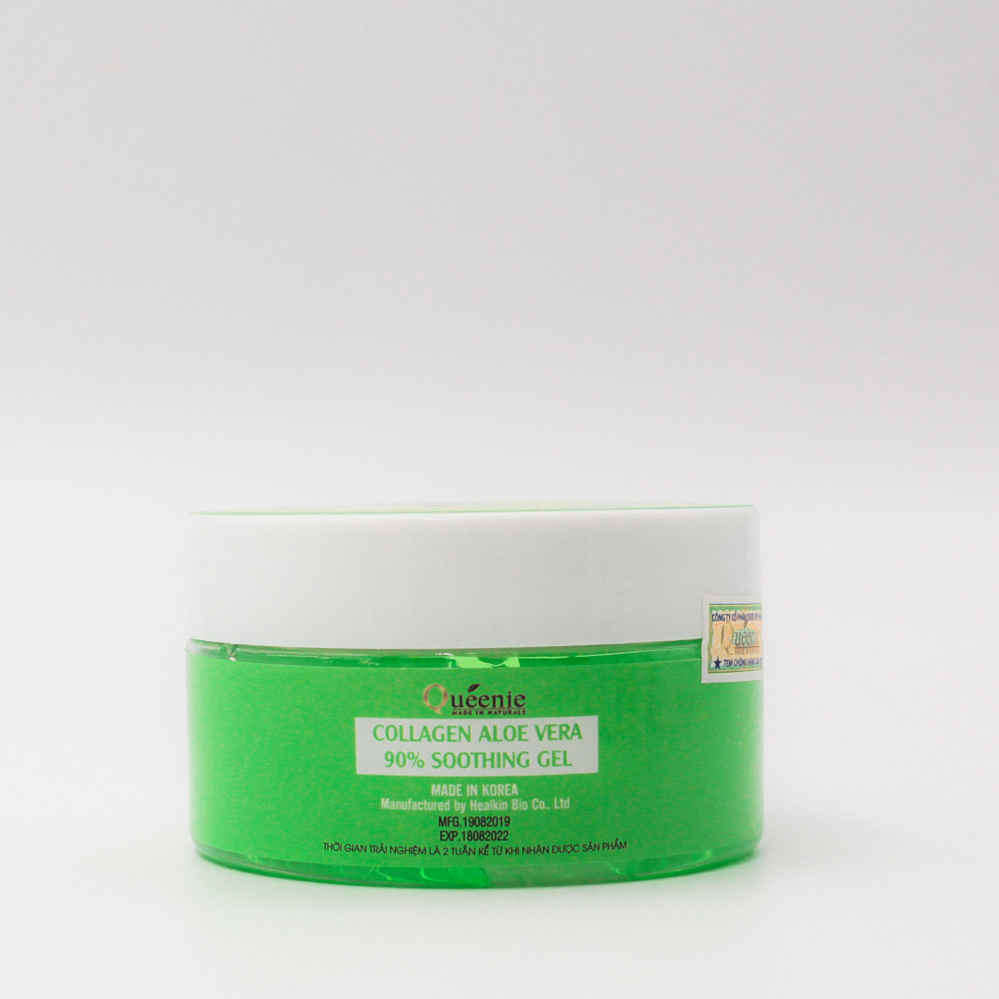 Gel dưỡng ẩm 90% tinh chất lô hội bổ sung Collagen Queenie trải nghiệm 100ml - Mỹ Phẩm Hàn Quốc Dưới sự tác động của môi trường và nhiệt độ, làn da trở nên khô ráp, nứt nẻ, lớp trang điểm không mịn. Gel lô hội Queenie Collagen Aloe Vera 90% Soothing Gel đa tác dụng được chiết xuất 90% từ cây nha đam rất an toàn, giải nhiệt cho làn da, mang lại cảm giác tươi mát trong những ngày hè nắng nóng; duy trì làn da mềm mịn chống lại thời tiết hanh khô của mùa đông. Kết hợp với dưỡng chất từ rễ cây hoa thục quỳ và nấm men sinh học giúp kháng viêm cho da một cách an toàn. Sản phẩm cung cấp một lượng nước lớn cho da bị cháy, đỏ rát sau khi đi nắng hoặc tắm biển, da bị viêm chân lông, mụn mà không gây kích ứng cho da. Làn da đang bị tấy đỏ, bị ngứa sẽ được làm dịu mát ngay tức thì.