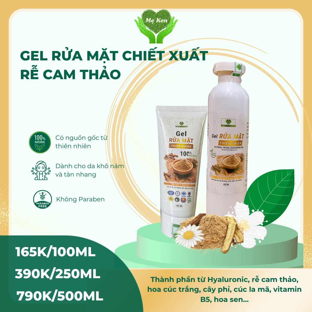 ✨GEL RỬA MẶT THIÊN NHIÊN CHIẾT XUẤT RỄ CAM THẢO MẸ KEN tuýp 100ml - Dành cho da thường, khô, nám, tàn nhang