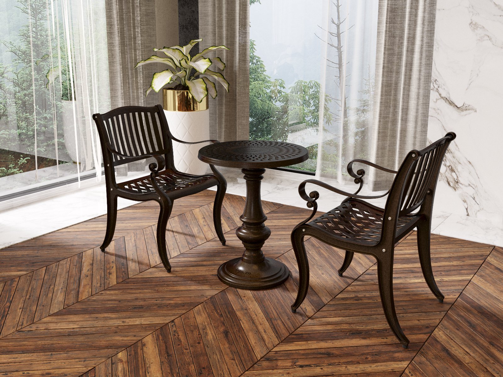 Bàn giao 2 bộ bàn ghế nhôm đúc ngoài trời cho Biệt thự Bàu Bàng, Bình Dương #banghenhomduc #nhadep