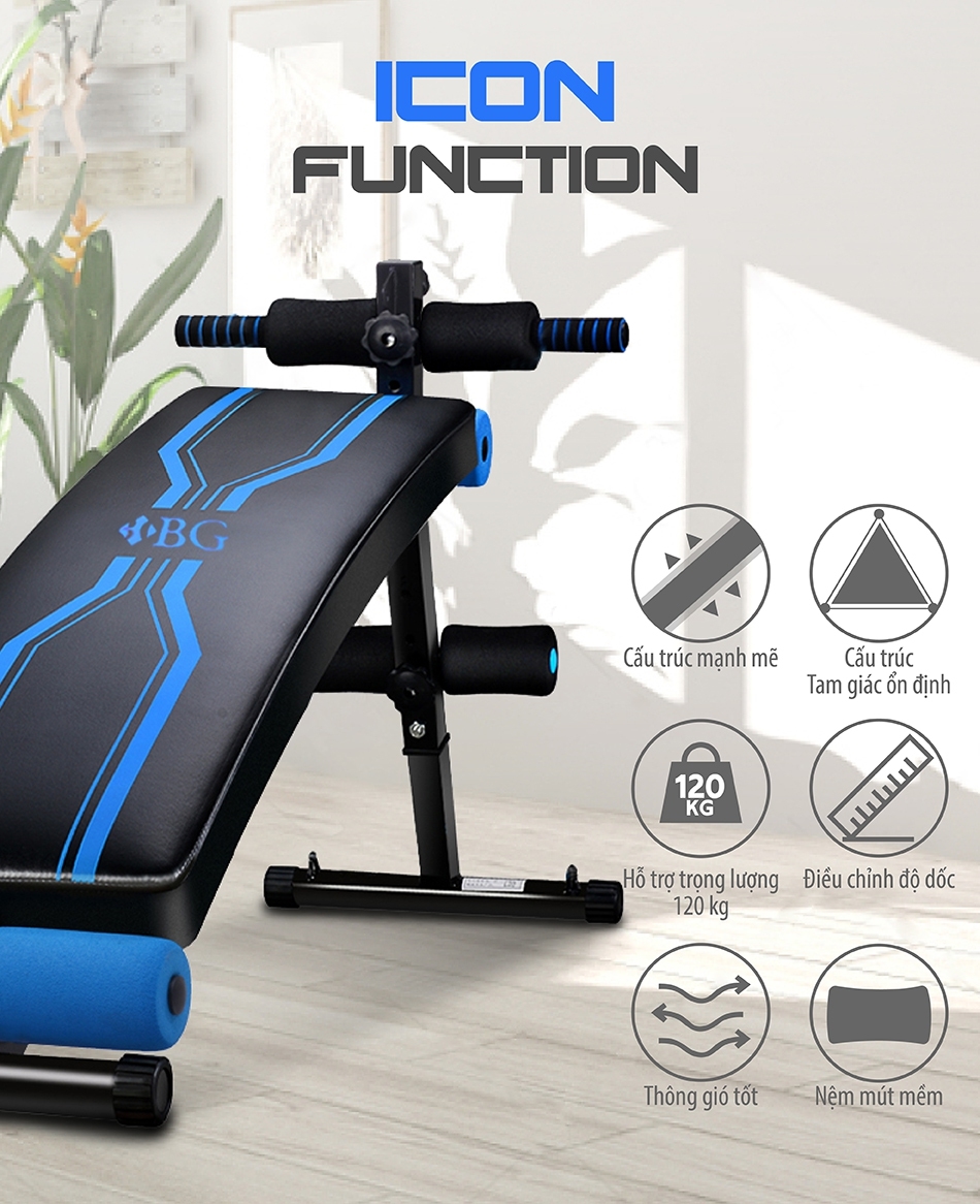 1. Thông tin ghế tập bụng đa năng MK-BS028 Màu sắc Đen Trọng lượng ghế 11kg Tải trọng tối đa 150kg Kích thước thùng 69 x 33 x 32cm Kích thước lắp đặt 142 x