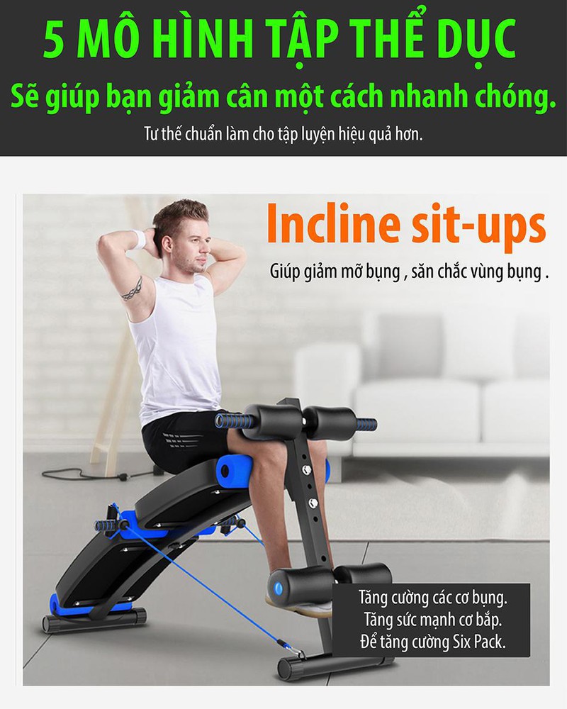 Ghế tập có thể điều chỉnh độ cao để tạo tác dụng tập trung lên vùng cơ trên và cơ dưới của bụng; đồng thời cũng thật gọn nhẹ, dễ sử dụng, gấp lại và cất gọn mỗi khi không dùng đến.