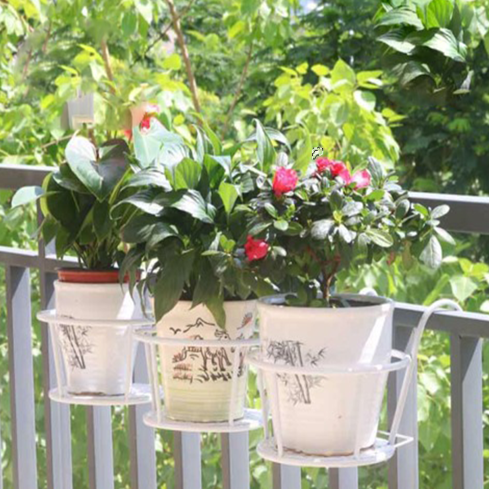 Giá sắt treo ban công làm bằng sắt rỗng, nhẹ vững chắc, sơn trắng, nâu sang trọng, làm nổi bật thêm vẻ đẹp của chậu hoa. Chắc chắn sẽ làm điểm nhấn thu hút cho
