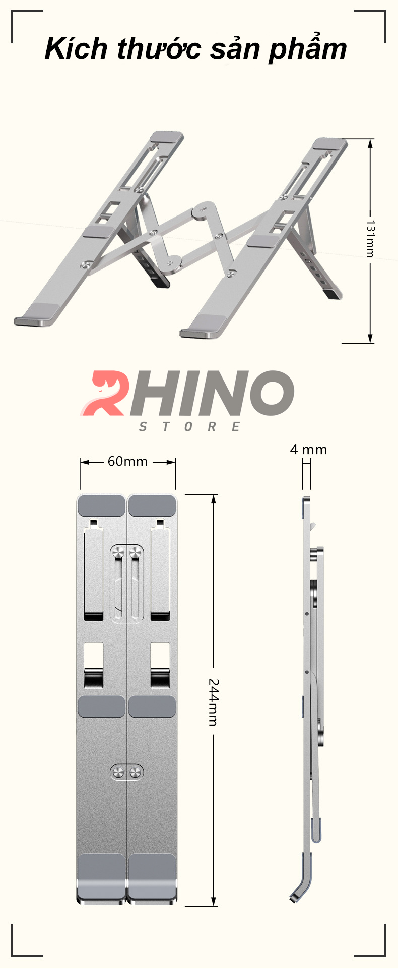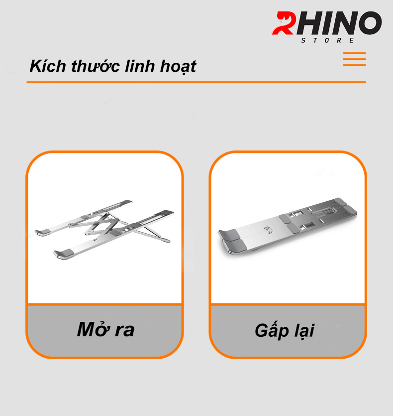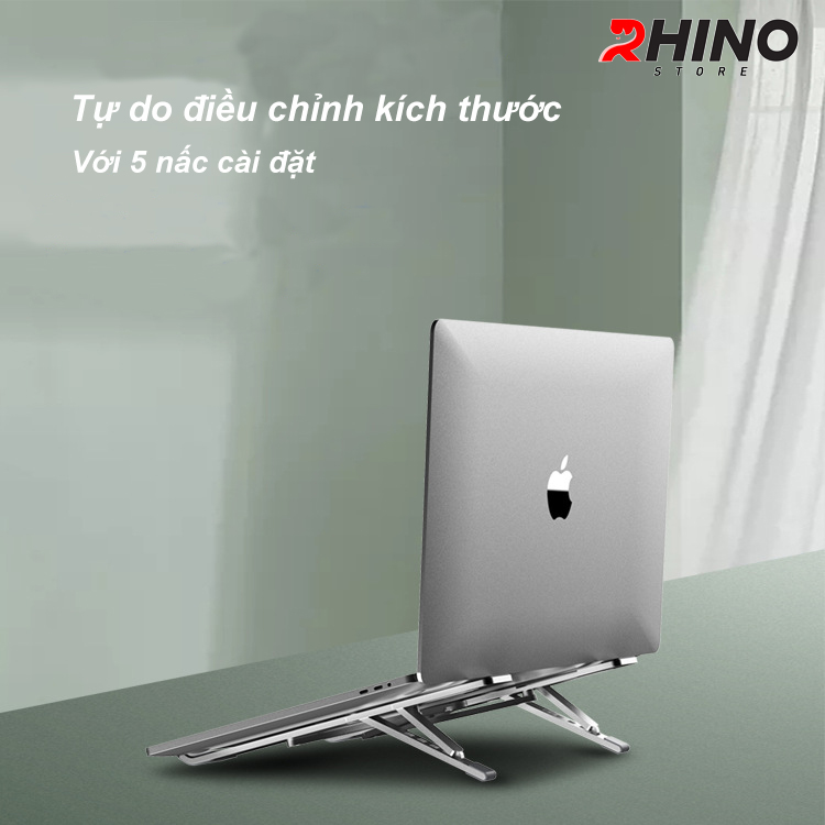 Mua tại TiktokGiá đỡ Laptop, cho ipad tản nhiệt Rhino KL102, kệ đỡ máy tính nhôm cao cấp, gấp gọn - Hàng chính hàng Đế tản nhiệt hợp kim nhôm cao cấp 6 cấp độ, siêu bền chính hãng Rhino