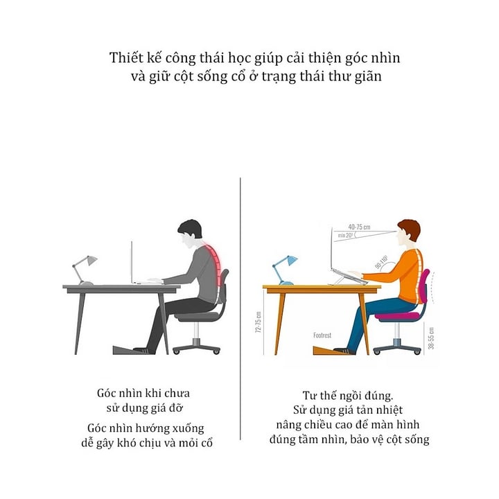 Giá đỡ Laptop Stand Thương hiệu: Mô tả sản phẩm - Thiết kế công thái học: Giá đỡ máy tính xách tay thiết kế kiểu Z có thể điều chỉnh độ cao và góc bằng