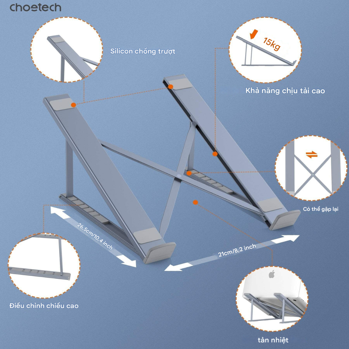 Mua tại TiktokGiới thiệu Giá đỡ laptoptản nhiệt gấp gọn Choetech H055 cho máy từ 9 đến 17 inch(Hàng chính hãng)