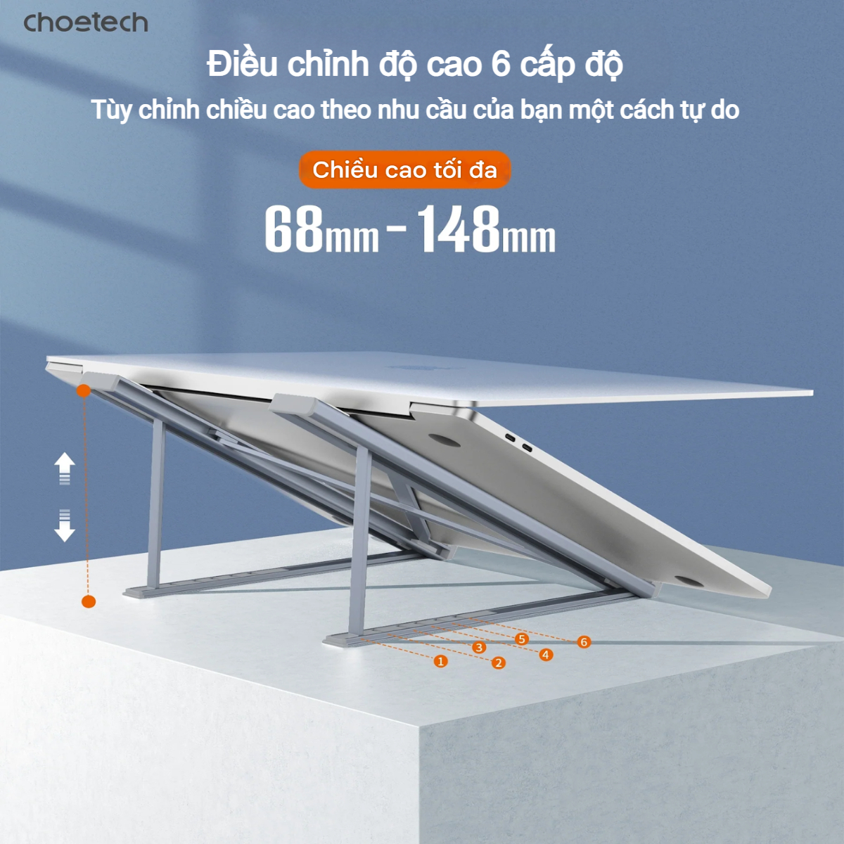 Giới thiệu Giá đỡ laptoptản nhiệt gấp gọn Choetech H055 cho máy từ 9 đến 17 inch(Hàng chính hãng) - Thương hiệu: Choetech - Model: H055 - Kích thước hỗ trợ: Từ 9 inch đến 17 inch - Chất liệu: Hợp