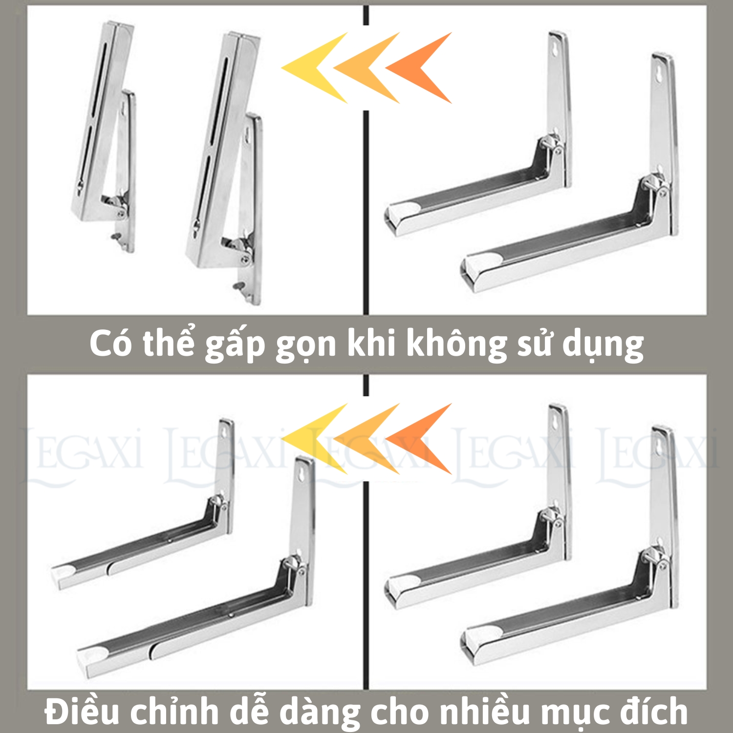 - Có thể dùng làm kệ đựng wifi, ổ điện, cục switch, ổ cứng mạnh, HƯỚNG DẪN SỬ DỤNG Bước 1: Đo chiều dài chân đế vật cần đỡ để ước chừng khoảng cách 2 thanh ngang. Bước 2: Đánh dấu vị trí khoan tắc kê lỗ sắt trên 2 thanh dọc lên tường. Bước 3 (Không bắt buộc): Khoan tắc kê lỗ sắt lên tường trước. Bước 4: Đục 4 tắc kê lỗ sắt để cố định giá đỡ lên tường. Bước 5: Gập thanh ngang 90 độ với thanh dọc, điều chỉnh độ dài thanh ngang theo chiều dài chân đế rồi khóa chặt vít. Bước 6: Gắn miếng đệm nhựa bằng vít. Bước 7: Kiểm tra độ chắc chắn và hoàn thành.