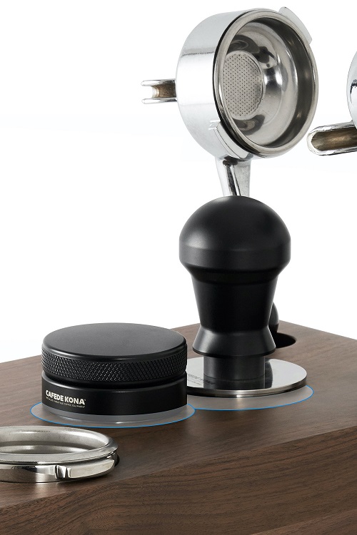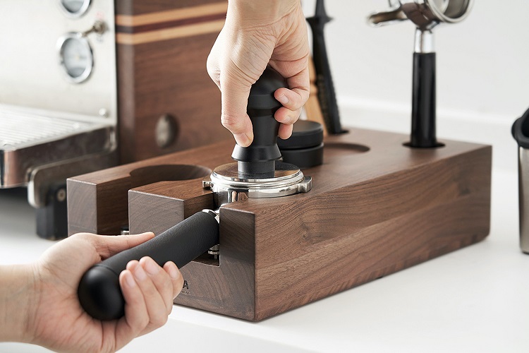 GIÁ ĐỠ TAMPER BẰNG GỖ TỰ NHIÊN PHA CÀ PHÊ MÁY ESPRESSO CAFE DE KONA Khối gỗ được làm bằng 2 loại gỗ: gỗ óc chó đen và gỗ giẻ gai châu âu.