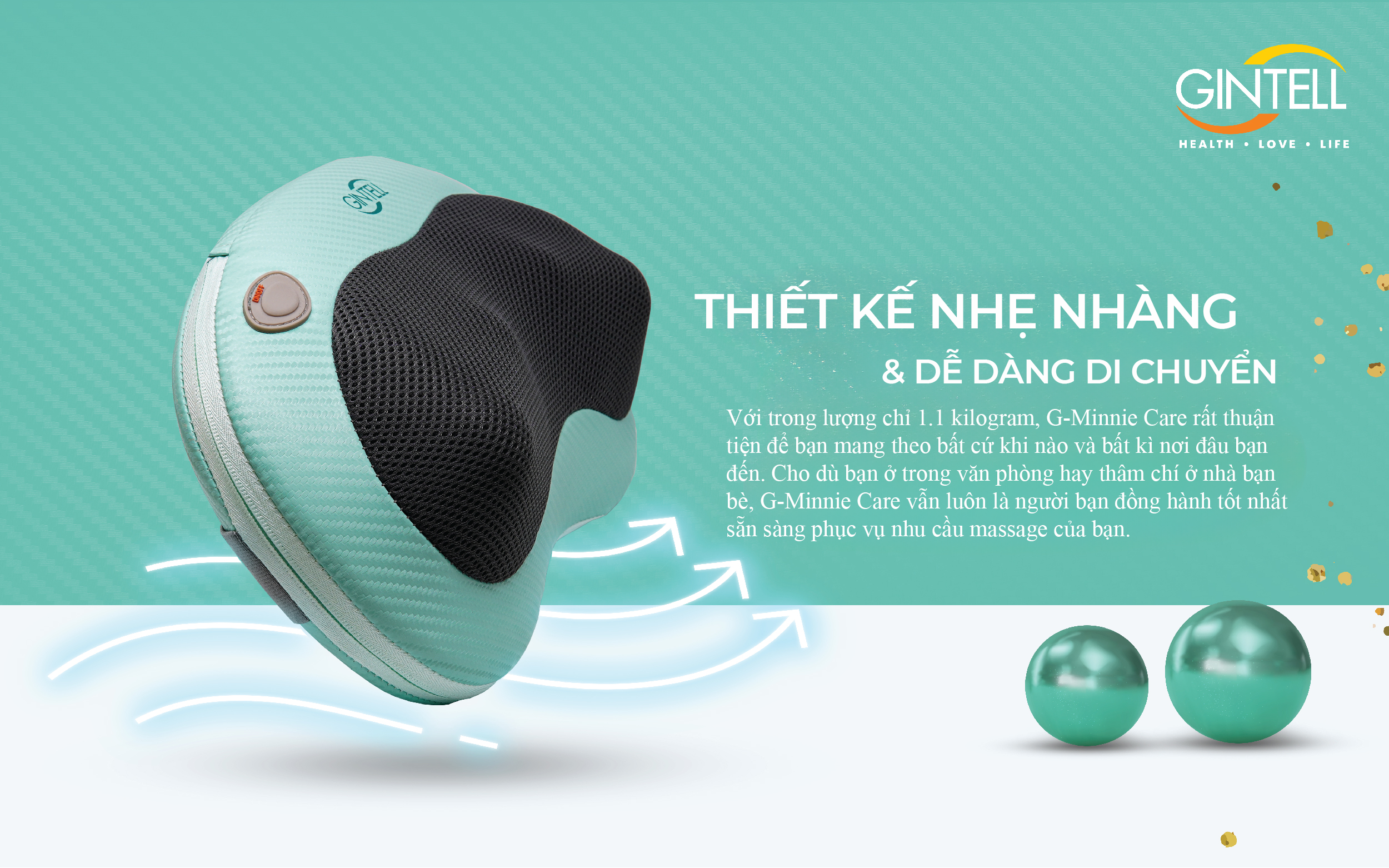 GỐI MASSAGE G-MINNIE CARE CHI TIẾT SẢN PHẨM - Tên sản phẩm: Gối Massage G-Minnie Care - Mã sản phẩm: GT120 - Thương hiệu: GINTELL - Bảo hành: 12 tháng 1 đổi 1 trong 7