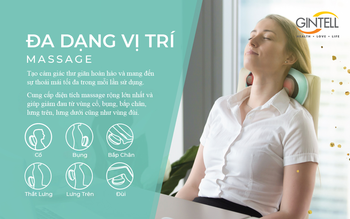 gối massage Tính năng làm nóng bằng nhiệt hồng ngoại cải thiện khả năng trao đổi chất giữa các tế bào, tăng khả năng nuôi dưỡng lưu thông tuần hoàn máu, làm thon gọn vóc