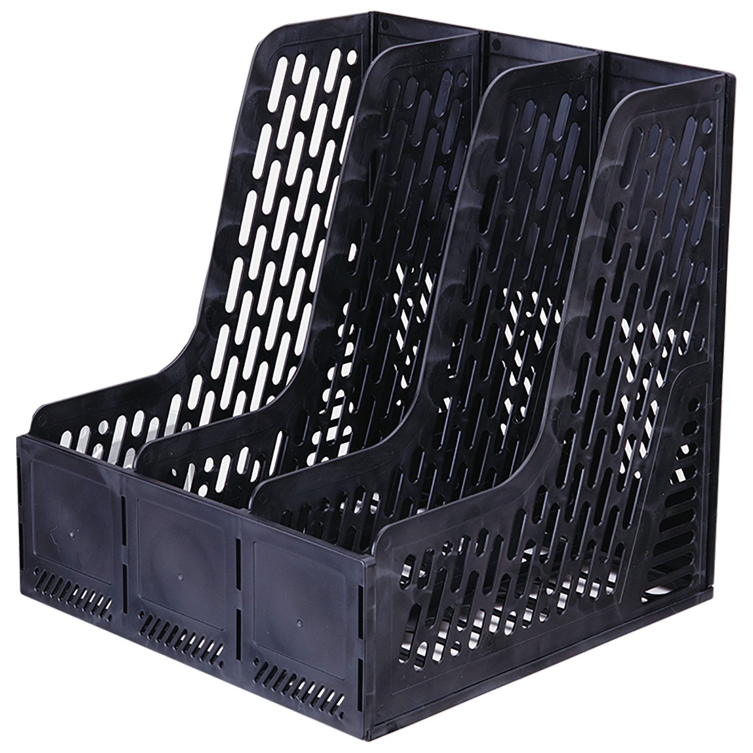 Khay Tài Liệu Nhựa 3 Ngăn Deli 9845 được thiết kế 3 ngăn dạng đứng, phù hợp để lưu trữ các loại tài liệu hoặc các dụng cụ văn phòng phẩm khác. Các chi tiết nhựa