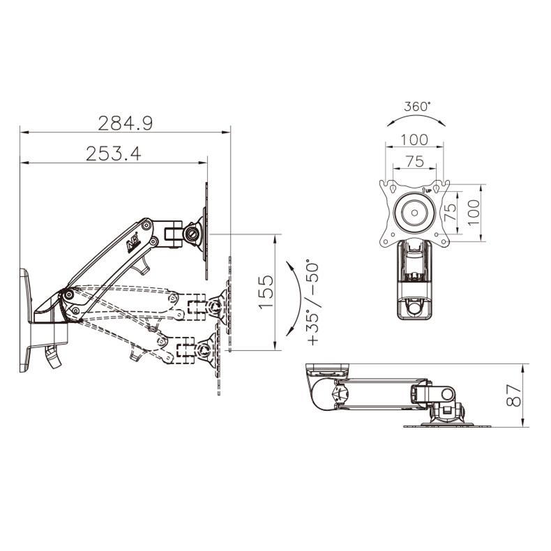 Khung treo tường F120 là Sản phẩm có phần cánh tay mở rộng được xây dựng bằng vật liệu hợp kim nhôm với vẻ bề ngoài mịn màng. Quản lý cáp tích hợp đẹp được thiết kế mang lại sự sạch sẽ và tránh lộn xộn