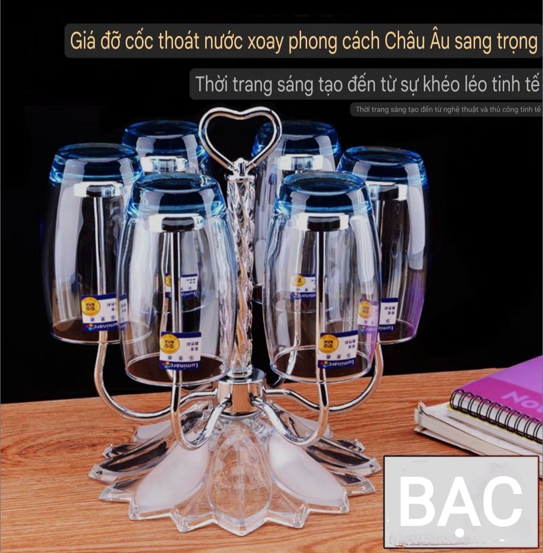GIÁ ĐỠ UP LY CỐC INOX & THỦY TINH PHA LÊ THOÁT NƯỚC XOAY PHONG CHÁCH CHÂU ÂU SANG TRỌNG