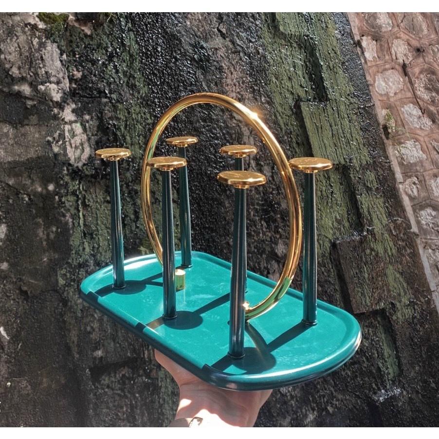 Giá cắm 6 chiếc cốc dạng gọn (CL95965) Giá có khay hứng nước Chất liệu sắt sơn tĩnh điện cao cấp màu vàng cực sang chảnh Dễ vệ sinh, không bị hoen rỉ Kiểu dáng