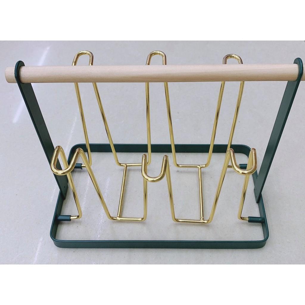 ✨Giá úp ly cốc chữ nhật sơn chống rỉ màu xanh cổ vịt kết hợp vàng sang trọng