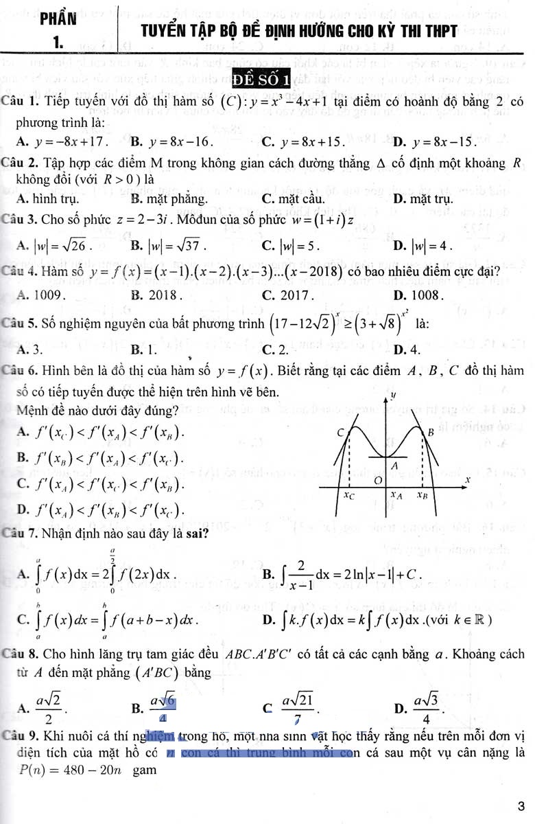 Vì vậy, để giúp các bạn ôn luyện hiệu quả hơn, xin giới thiệu đến các bạn cuốn Bộ Đề Luyện Thi Thử THPT Quốc Gia Môn Toán. Trong đây, các bạn sẽ dễ dàng tìm thấy nhiều dạng đề bài thi thử và chính thức của những năm trước. Cuốn sách tuy không bao gồm phần ôn lại lý thuyết và phân bài tập theo từng dạng nhưng nó tổng hợp cho các bạn thành từng bộ đề như một đề thi THPT Quốc gia chính thức, giúp các bạn có cơ hội làm quen với cấu trúc đề thi. Ngay sau mỗi bộ đề sẽ kèm theo đáp án và lời giải ngắn gọn, dễ hiểu để các bạn tra lại đáp án và có thể tham khảo cách giải của những Thầy, Cô biên soạn nên bộ đề này.