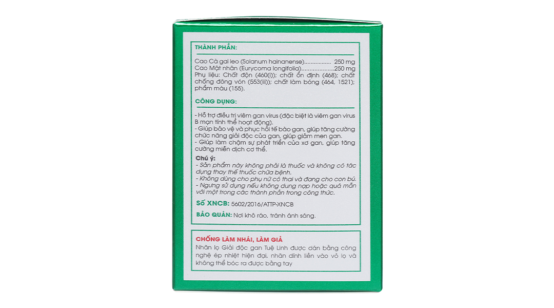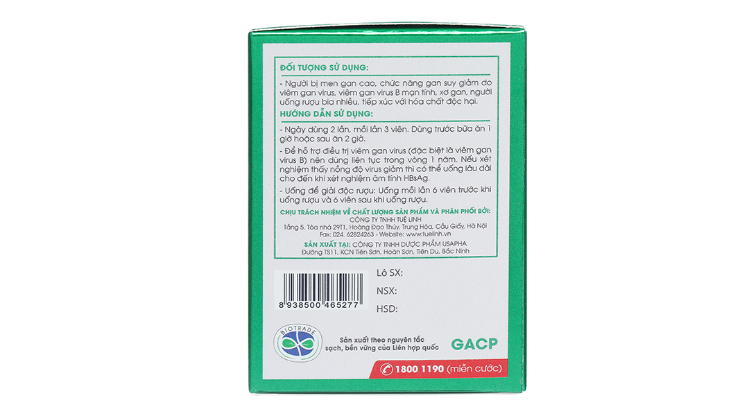 Viên uống giải độc gan Tuệ Linh hỗ trợ điềutrị viêm gan virus (đặc biệt là viêm gan virus B mạn tính thể hoạt động).