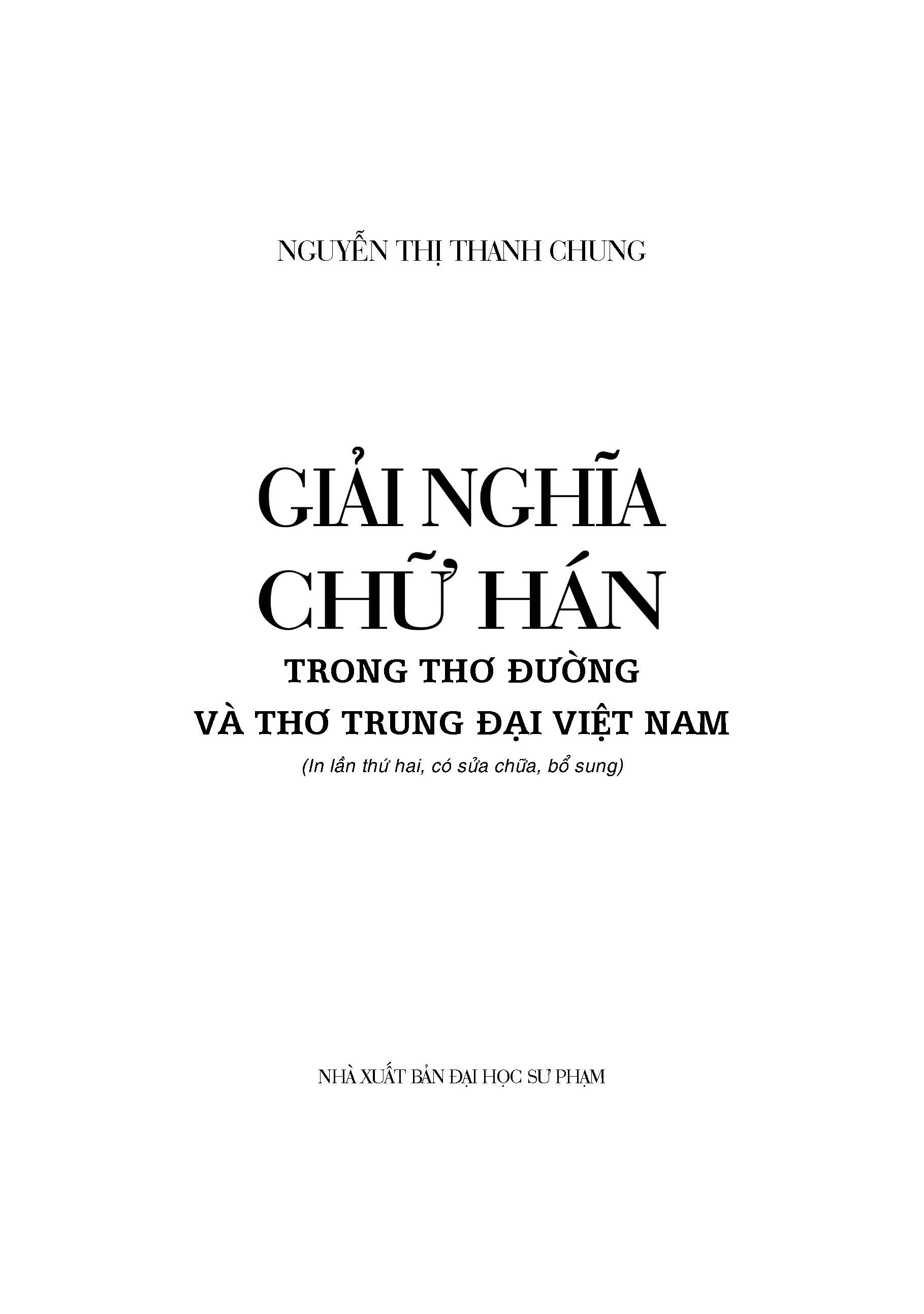 ✨Giải nghĩa chữ Hán trong thơ Đường và thơ trung đại Việt Nam - Nguyễn Thị Thanh Chung