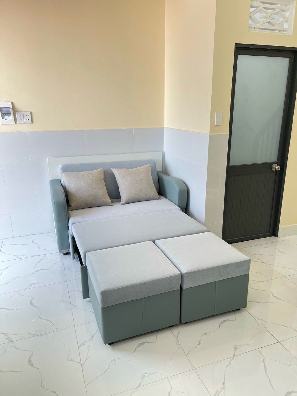 Sofa giường gỗ thông minh xếp gọn.