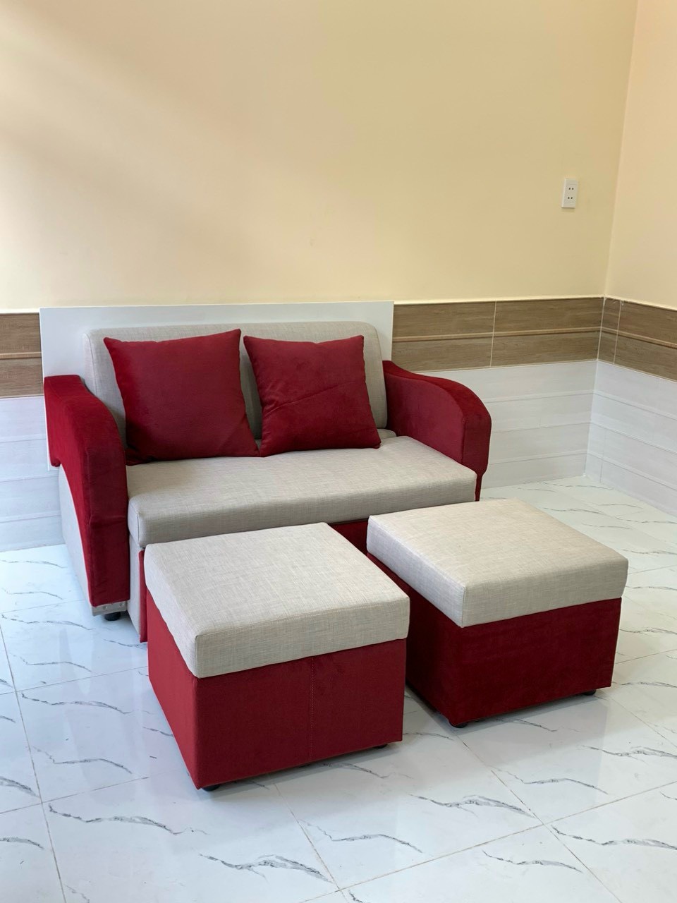 *** Quý khách hàng vui lòng chọn sản phẩm nhà bán TUNDO để nhận được sản phẩm đúng với chất lượng *** Khung gỗ : Gỗ dầu tự nhiên Chất liệu: Đệm bọc nỉ ,