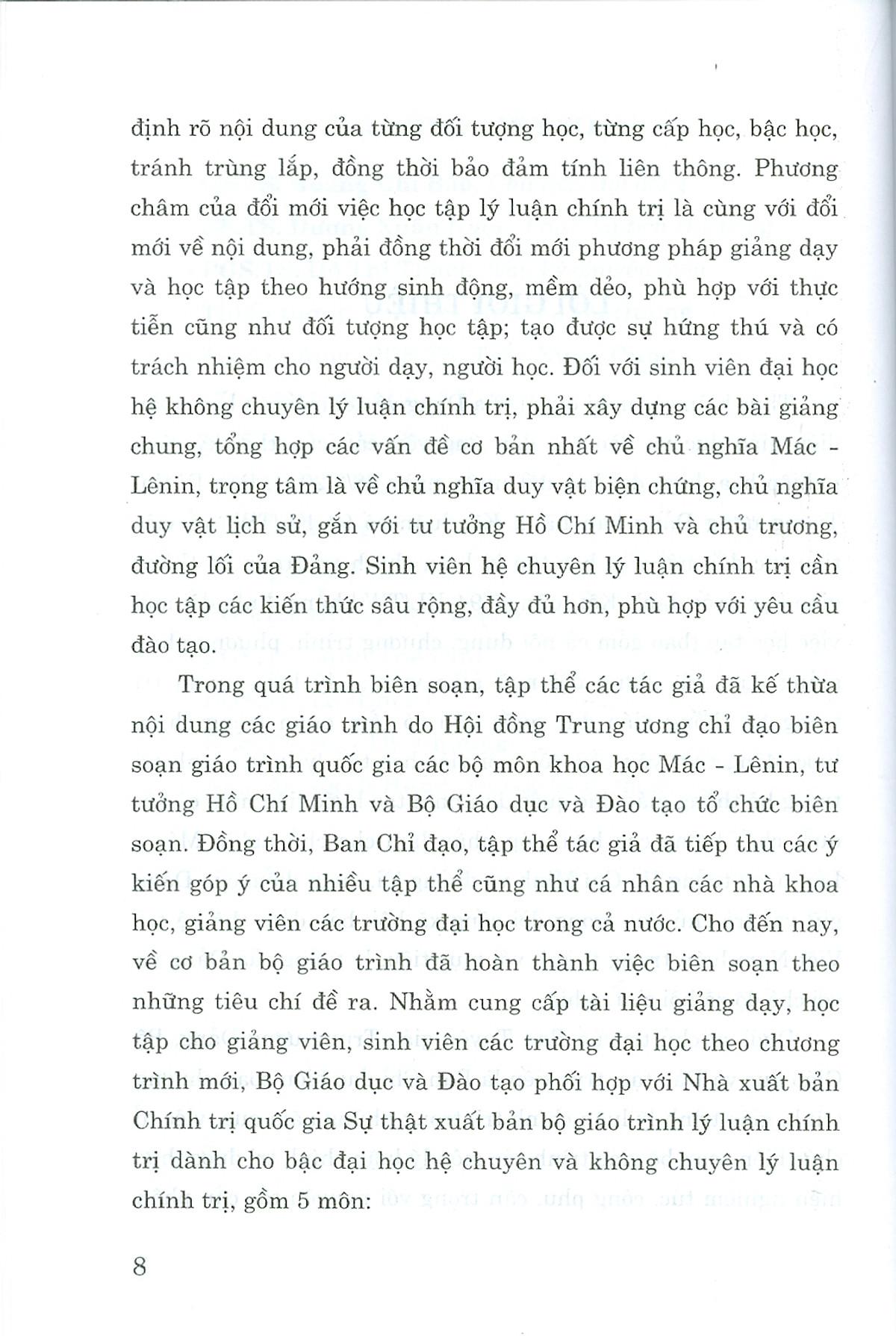 Bộ giáo trình lý luận chính trị gồm 5 cuốn dành cho bậc đại học hệ không chuyên lý luận chính trị. Bộ sách là tài liệu giảng dạy, học tập cho giảng viên, sinh