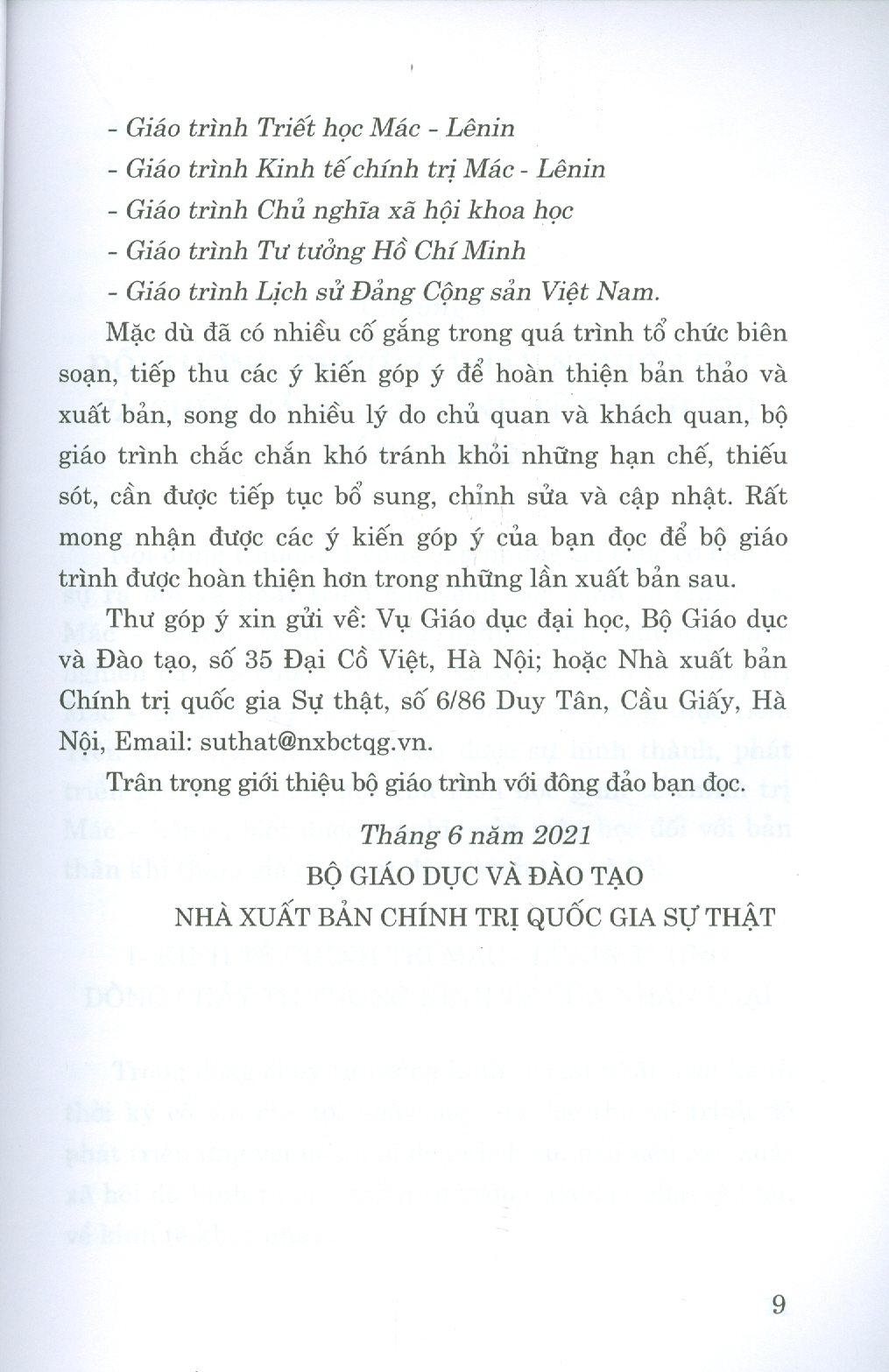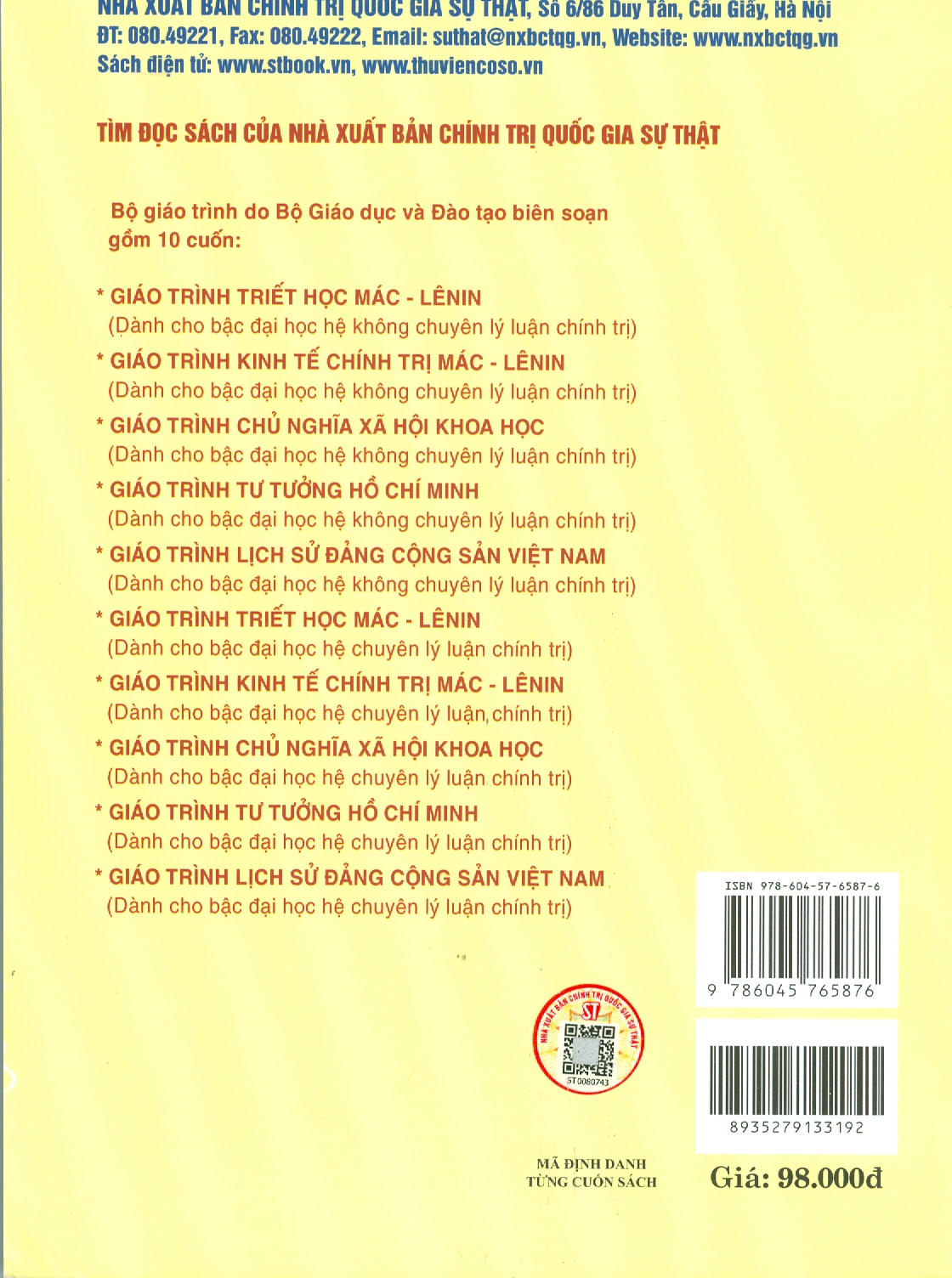 Bộ giáo trình lý luận chính trị gồm 5 cuốn dành cho bậc đại học hệ không chuyên lý luận chính trị. Bộ sách là tài liệu giảng dạy, học tập cho giảng viên, sinh