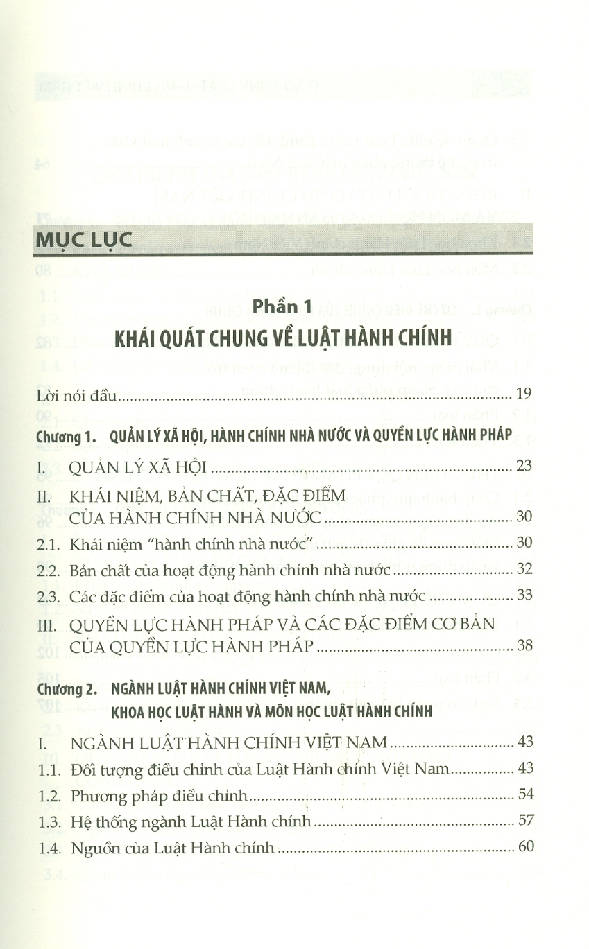 MỤC LỤC PHẦN 1: KHÁI QUÁT CHUNG VỀ LUẬT HÀNH CHÍNH CHƯƠNG 1: QUẢN LÝ XÃ HỘI, HÀNH CHÍNH NHÀ NƯỚC VÀ QUYỀN LỰC HÀNH PHÁP 1. QUẢN LÝ XÃ HỘI 2. KHÁI NIỆM, BẢN