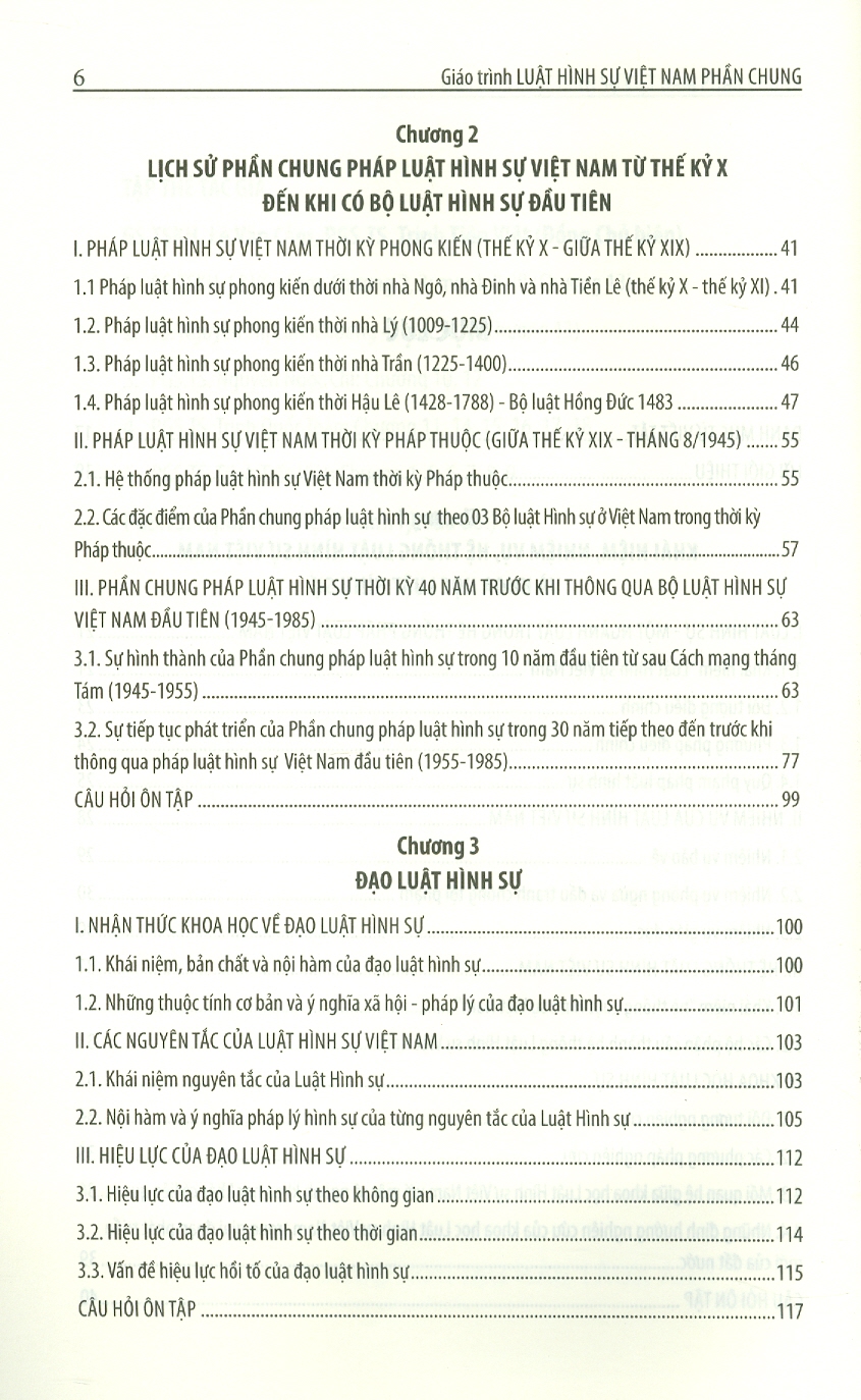 - Về kết cấu: Cuốn sách được sắp xếp theo các vấn đề lôgíc và khoa học. Đặc biệt, trong lần in này, Chương “Các nguyên tắc của Hình sự Việt Nam” được viết gộp chung với Chương “Đạo luật hình sự”; bên cạnh đó có một chương mới được viết thêm về “Trách nhiệm hình sự của pháp nhân thương mại phạm tội” nhằm mục đích tìm hiểu, nghiên cứu về cơ sở lý luận và những căn cứ pháp lý để truy cứu trách nhiệm hình sự pháp nhân thương mại phạm tội do đây là vấn đề lần đầu tiên được quy định trong Bộ luật Hình sự Việt Nam.