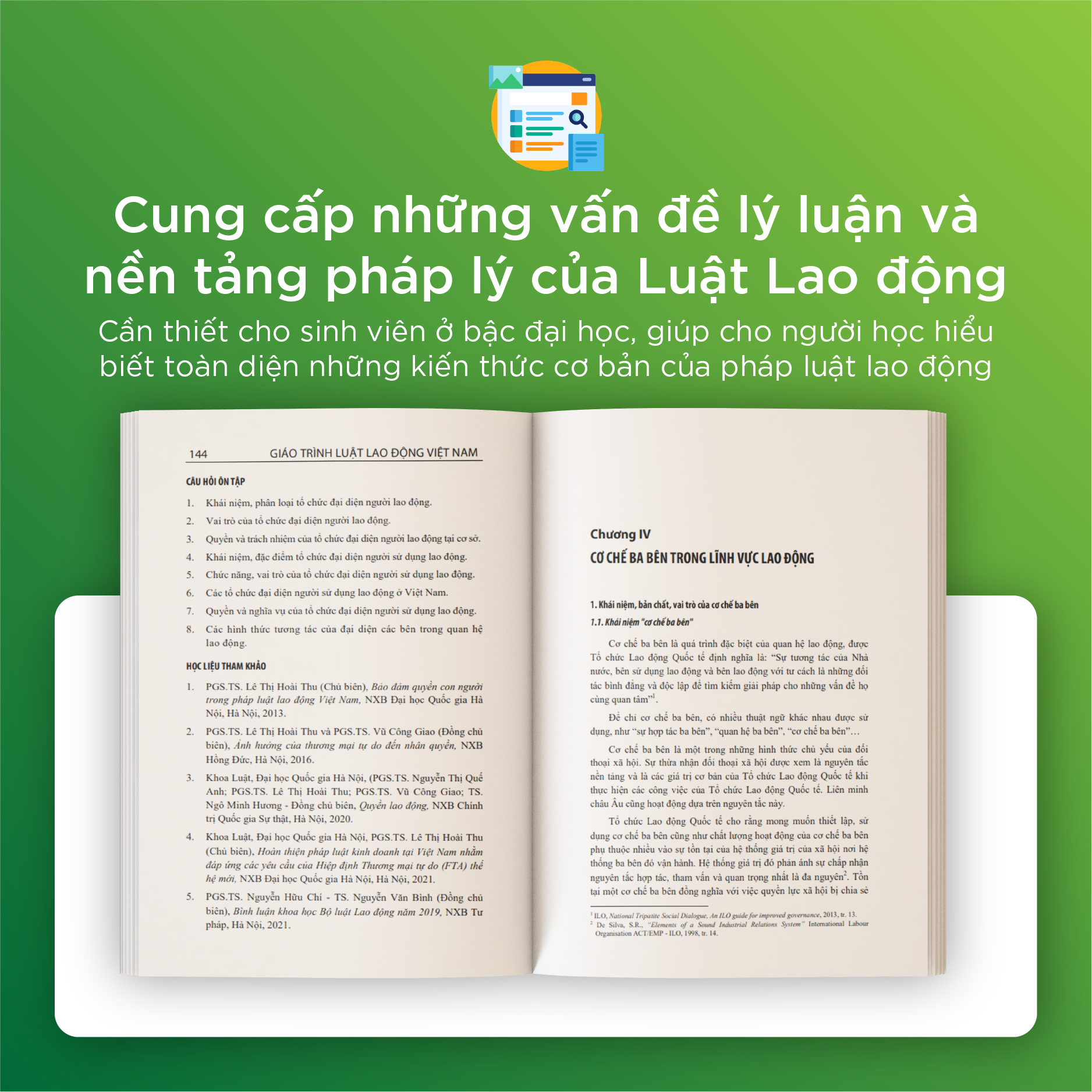 Mua tại TiktokGiáo trình Luật Lao động Việt Nam của Trường Đại học Luật - Đại học Quốc gia Hà Nội được biên soạn nhằm mục đích cung cấp những vấn đề lý luận và nền tảng pháp lý của Luật Lao động, cần thiết cho sinh viên ở bậc đại họ Giúp cho người học hiểu biết toàn diện những kiến thức cơ bản của pháp luật lao động với tư cách là một nghành luật độc lậ Cuốn sách gồm XVI chươ Giáo trình Luật Lao động Việt Nam Tác giả: PGS.TS. LÊ THỊ HOÀI THU Nhà XB: Nhà xuất bản ĐHQGHN Năm XB: 9/2023 Loại bìa: Bìa mềm Số trang:594 Kính thước: (16 x 24 x 4)cm