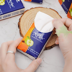 KHĂN GIẤY BỎ TÚI MYLAN TÁO là sản phẩm cao cấp của công ty giấy Mylan luôn nói không với hóa chất OBA, không tái chế, không tẩy trắng chính là chân ái, ""VẬT BẤT LY THÂN"" dành cho mọi người mỗi khi ra ngoài, giúp đánh bay mọi khó chịu khi bị dị ứng thời tiết, viêm xoang và cả những vết bụi bẩn bám trên da.