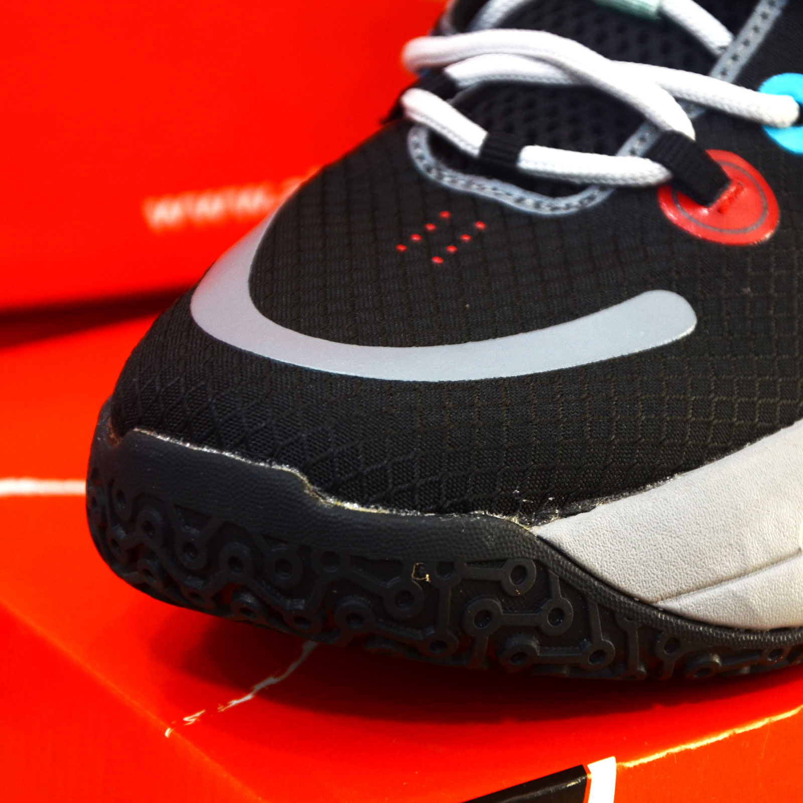 Đế giày được làm từ cao su tự nhiên có tính đàn hồi tốt và chống mài mòn một cách mạnh mẽ. Với đặc thù bộ môn Bóng rổ đòi hỏi vận động nhảy và chạy nhiều, khuôn đế được thiết kế để chống lật cổ chân, an toàn cho trẻ em khi tham gia tập luyện và thi đấu.