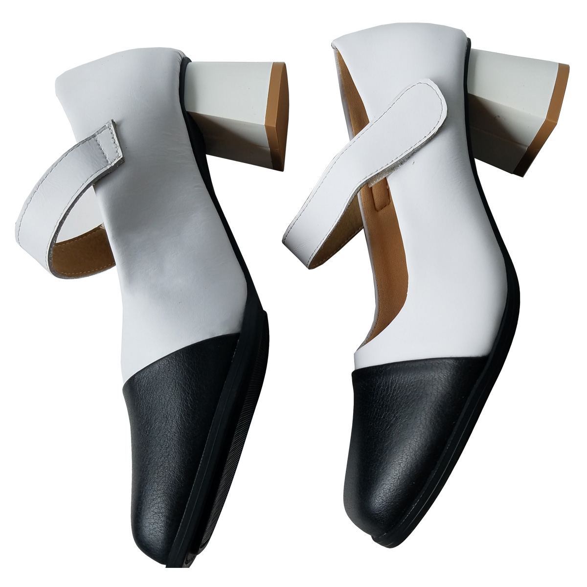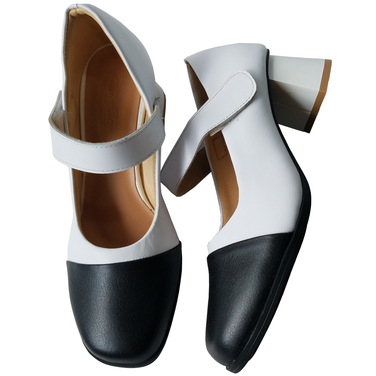 Giày cao gót nữ đẹp đế vuông 8 phân hàng hiệu rosata hai màu đen trắng ro470 ------------------------------------------------ Mô tả chi tiết: - Thương hiệu: rosata - Mã sản phẩm: ro470 - Kiểu dáng: Giày