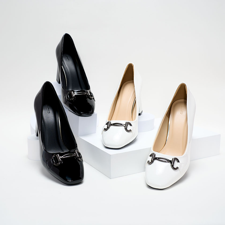 Giày Cao Gót BASSIC 8P PABNO PN22014 – Thanh lịch, sang trọng, dễ phối đồ Chất liệu: Da tổng hợp bóng Chiều cao gót: 8cm Màu sắc: Đen, Kem Kích thước: 35 – 39 Điểm
