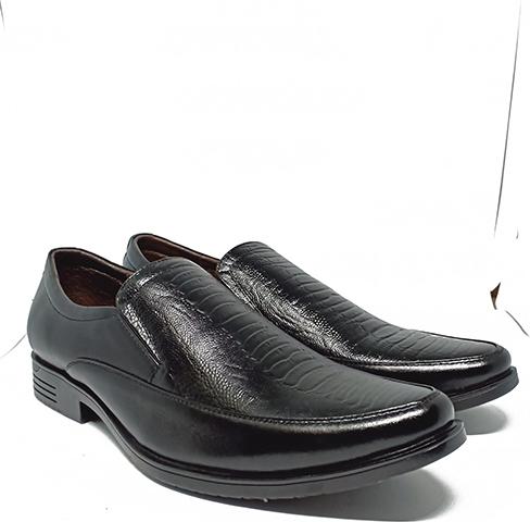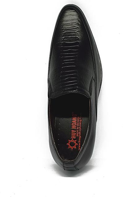 Giày tây nam Huy Hoàng da bò vân đà điểu màu đen 7795