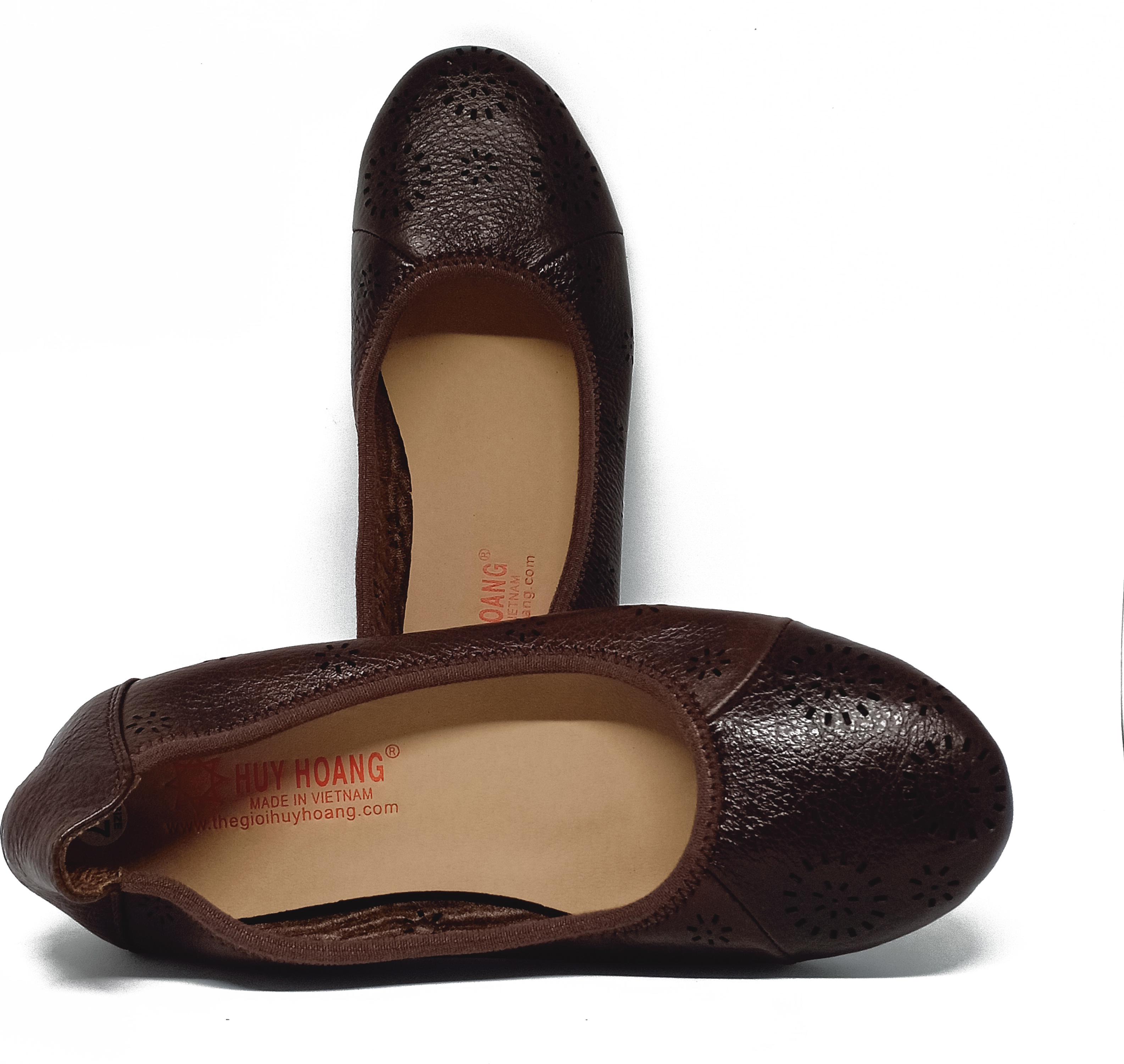 Giày nữ hoa văn Huy Hoàng da bò màu nâu 7952