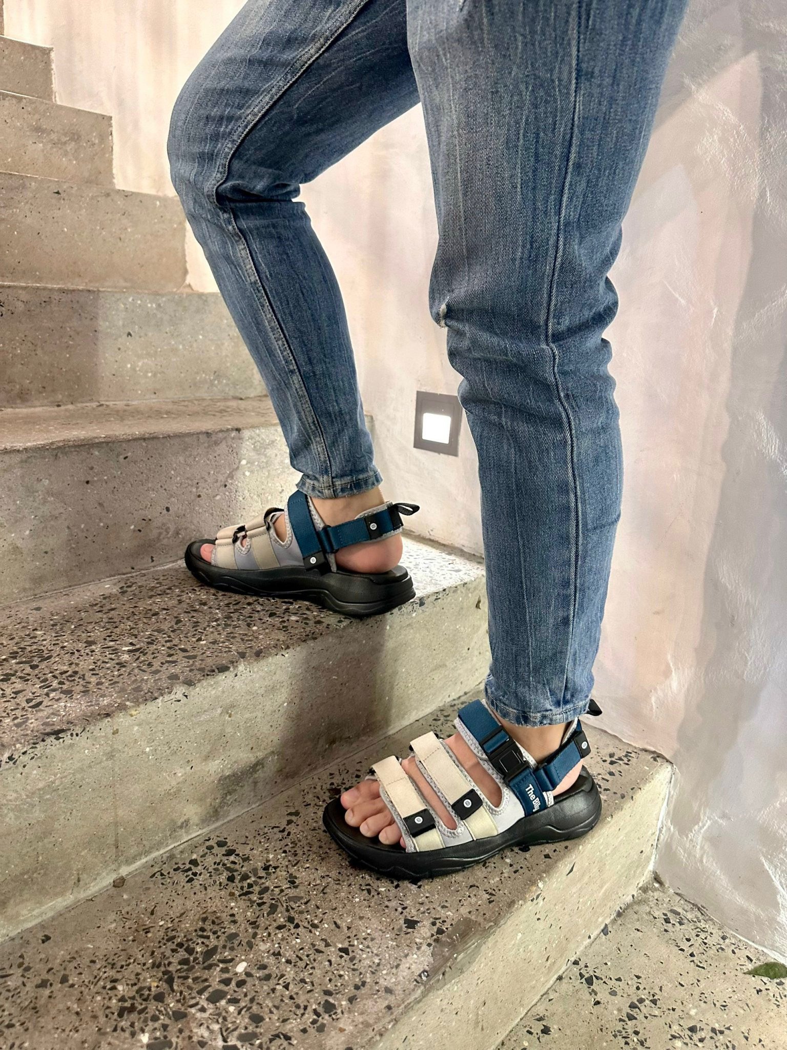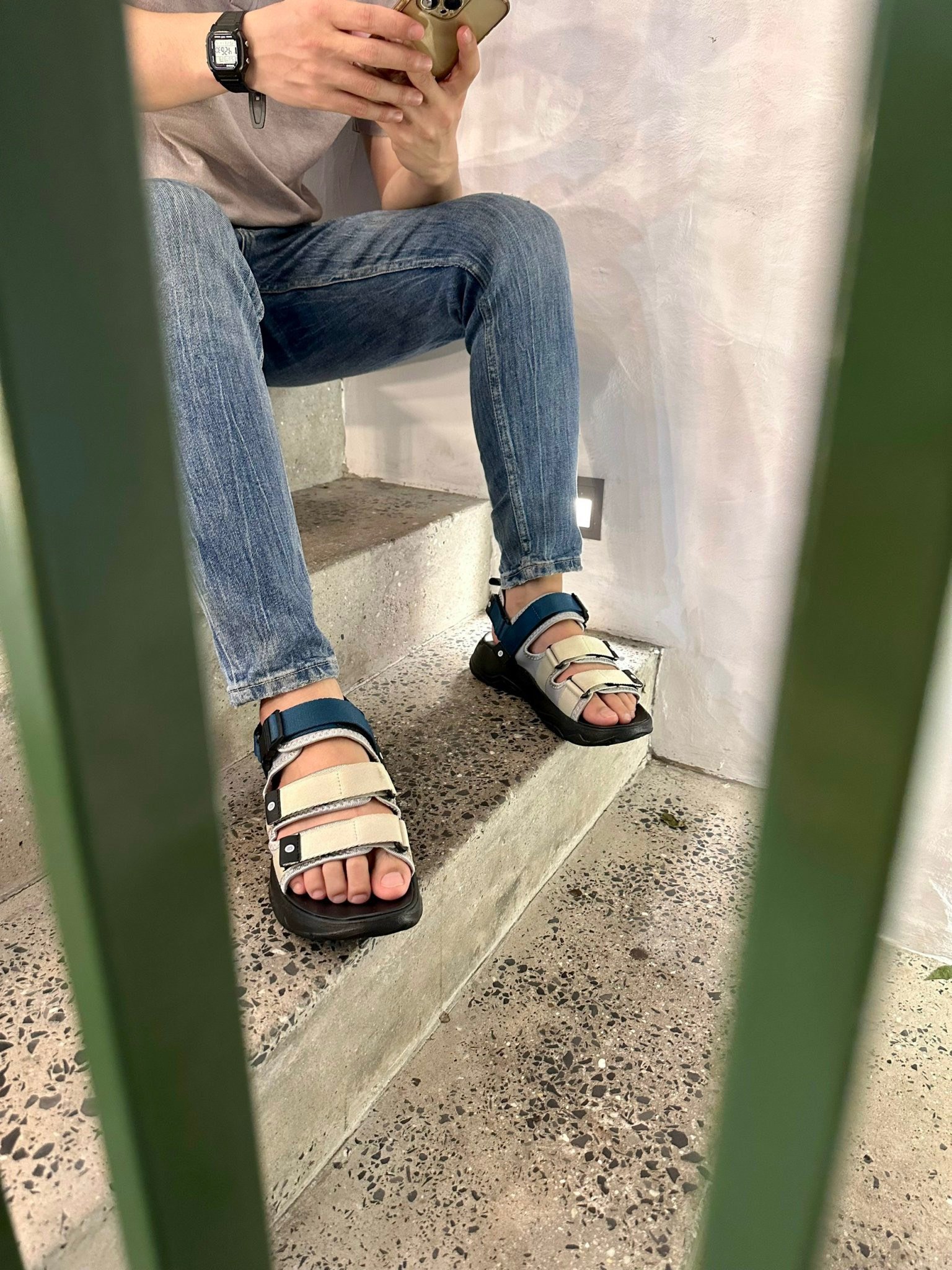 Giày Sandal Nam Nữ Unisex The BiLy Quai Ngang Dây Dù Đế IP Siêu Êm Nhẹ Đế Xám Màu Xanh Kem -BLDX08 +Mô Tả Sản Phẩm: - Dòng sản phẩm The Bily 08 có nhiều