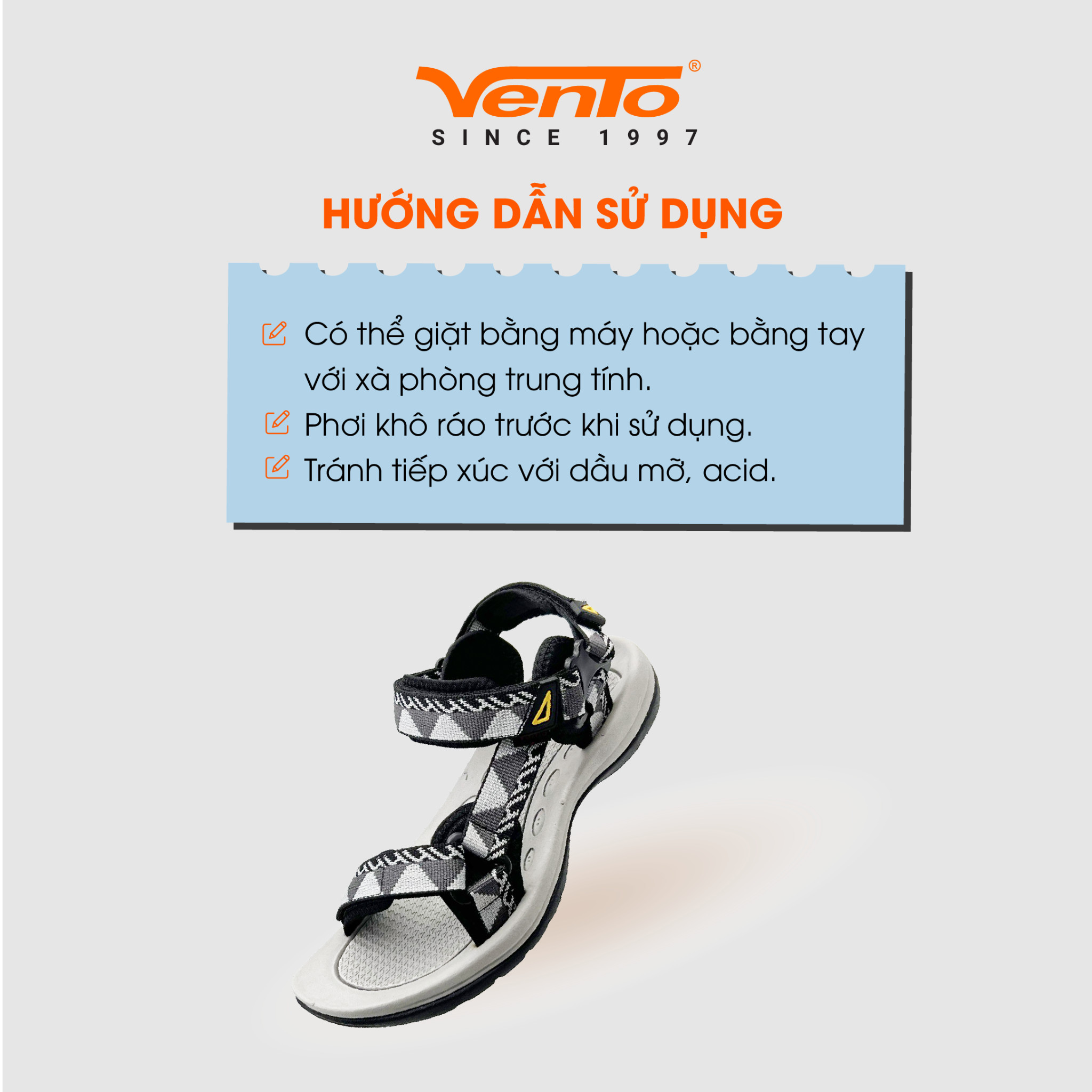 - Giày dép Sandal Vento được sản xuất trên thiết bị và kỹ thuật công nghệ cao của Nhật. Chất liệu sản phẩm cao cấp không gây hôi chân. Giày dép Sandal Vento được thiết