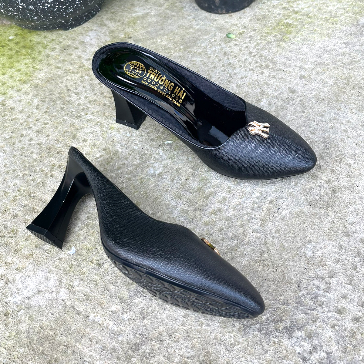 ✨Giày Sục nữ cao gót 7cm Trường Hải da mềm mại 2 màu đen, nâu S116