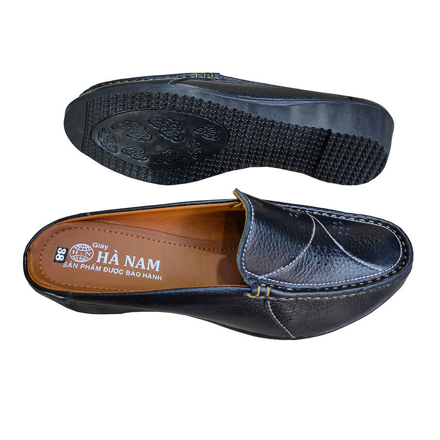 Giày đế xuồng trơn da bò đen Trường Hải