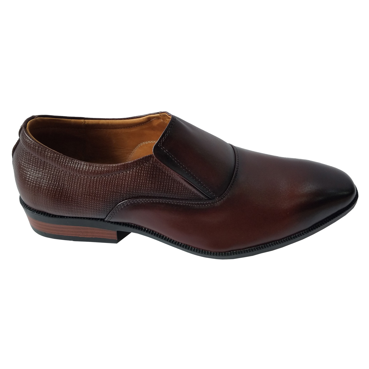 MÔ TẢ SẢN PHẨM: GIÀY TÂY NAM  – THANH LỊCH & TINH TẾ - Thiết kế sang trọng – Đơn giản mà đẳng cấp - Kiểu slip-on không dây, tiện lợi khi mang và tháo. - Form giày ôm vừa vặn, mũi tròn nhẹ giúp tôn dáng bàn chân. - Phong cách cổ điển pha hiện đại, phù hợp cho công sở, sự kiện hay gặp gỡ đối tác. - Chất liệu cao cấp – Bền đẹp theo thời gian - Thân giày làm từ da tổng hợp cao cấp, mềm mịn, bóng nhẹ, chống thấm nước nhẹ. - Lót trong êm ái, thoáng khí, tạo cảm giác dễ chịu khi di chuyển nhiều giờ. - Đế giày chắc chắn – Êm chân, bám tốt - Đế cao su chống trượt, độ ma sát cao, đảm bảo bước đi vững vàng. - Có độ đàn hồi tốt, giảm lực tác động khi di chuyển, giúp êm chân cả ngày dài. - Chi tiết tinh tế – Nâng tầm phong thái quý ông - Hai bên thân giày được thiết kế thun co giãn, giúp dễ mang và ôm chân chắc chắn. - Đường may sắc sảo, tạo nên vẻ hoàn thiện chuẩn chỉnh cho từng chi tiết. Phù hợp cho: - Doanh nhân, nhân viên văn phòng, giáo viên, hay người yêu thích phong cách lịch lãm. - Lý tưởng cho các dịp hội họp, phỏng vấn, sự kiện hoặc đi làm hằng ngày.