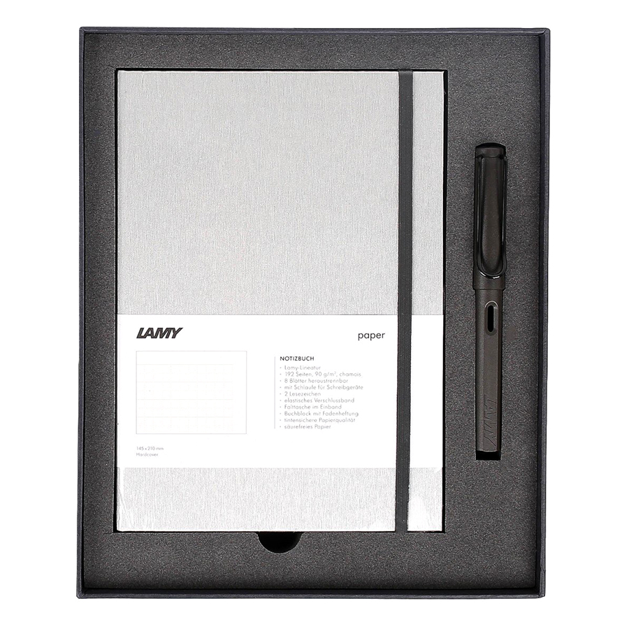 Bộ quà tặng LAMY Gift set Notebook Hardcover A5 đi kèm một chiếc bút máy LAMY Safari tinh tế. Tất cả được đặt trong một hộp quà LAMY sang trọng, thích hợp làm quà tặng