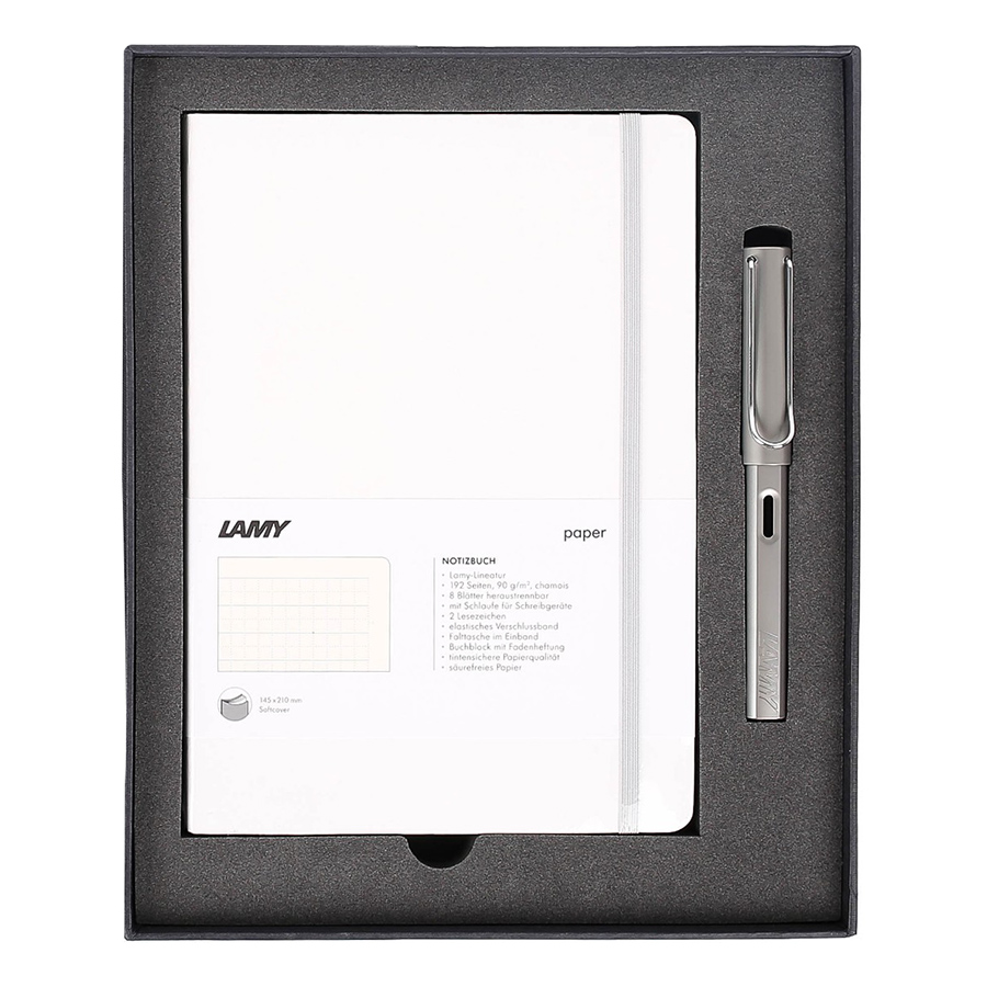 - Gift Set Lamy Notebook A6 Softcover Grey + Lamy Al-Star Grey - GSA6-Al009 là một phương tiện tuyệt vời cho những người muốn lưu giữ các ghi chú cá nhân dưới dạng chữ viết