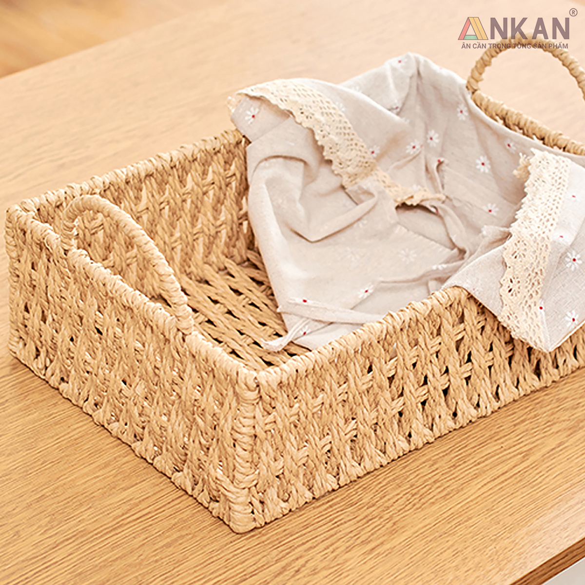 Giỏ Cói, Rổ Cói Vintage Có Vải Lót Hình Chữ Nhật