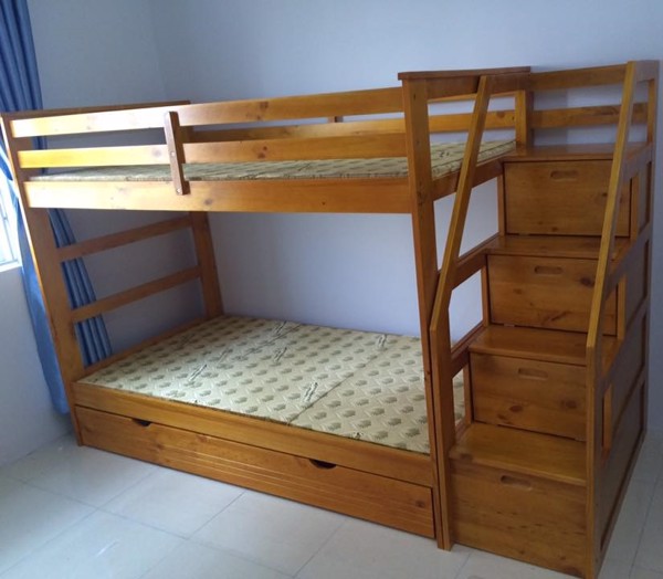 Thông tin sản phẩm: Sản phẩm chỉ bao gồm giường 2 tầng và cầu thang, không kèm các phụ kiện khác. - Chất liệu gỗ thông lâu năm nhập khẩu Canada bền bỉ, an toàn