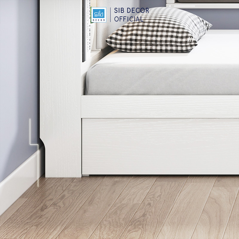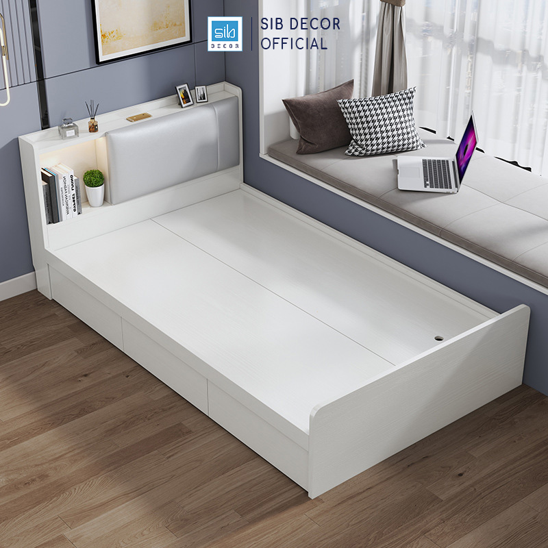 ✨Giường Gỗ Đơn Dài 1.2m Phối Đèn LED và 3 Ngăn Kéo Màu Trắng SIB Decor GN14