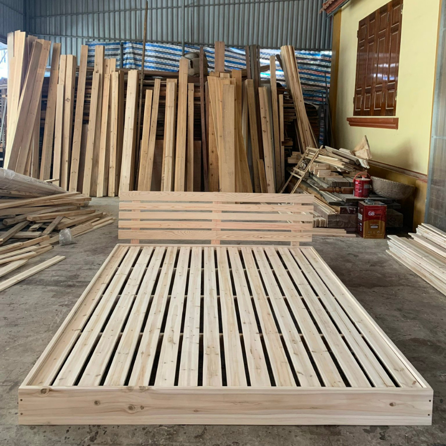 Bộ giường bao gồm: 2 thanh vai dọc, 2 thanh vai ngang, 3 thanh đỡ nan, 3 thanh đỡ tựa, 5 thanh tựa và nan giường.